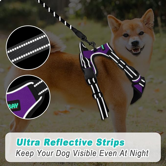 BARKBAY No Pull Dog Harness Large Step in Reflective Dog Harness with Front Clip and Easy Control Handle for Walking Training Running(Purple,S)