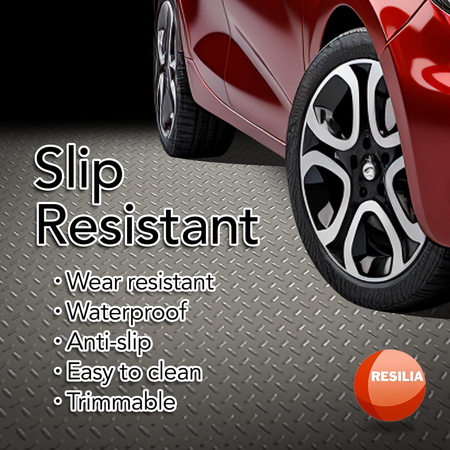 RESILIA Heavy Duty Garage Floor Runner & Protector Mat - Slip Resistant Diamond Plate PVC Mats - Water, Spill, & Stain Resistant, Sandstone (4 feet x 15 feet), Made in The USA