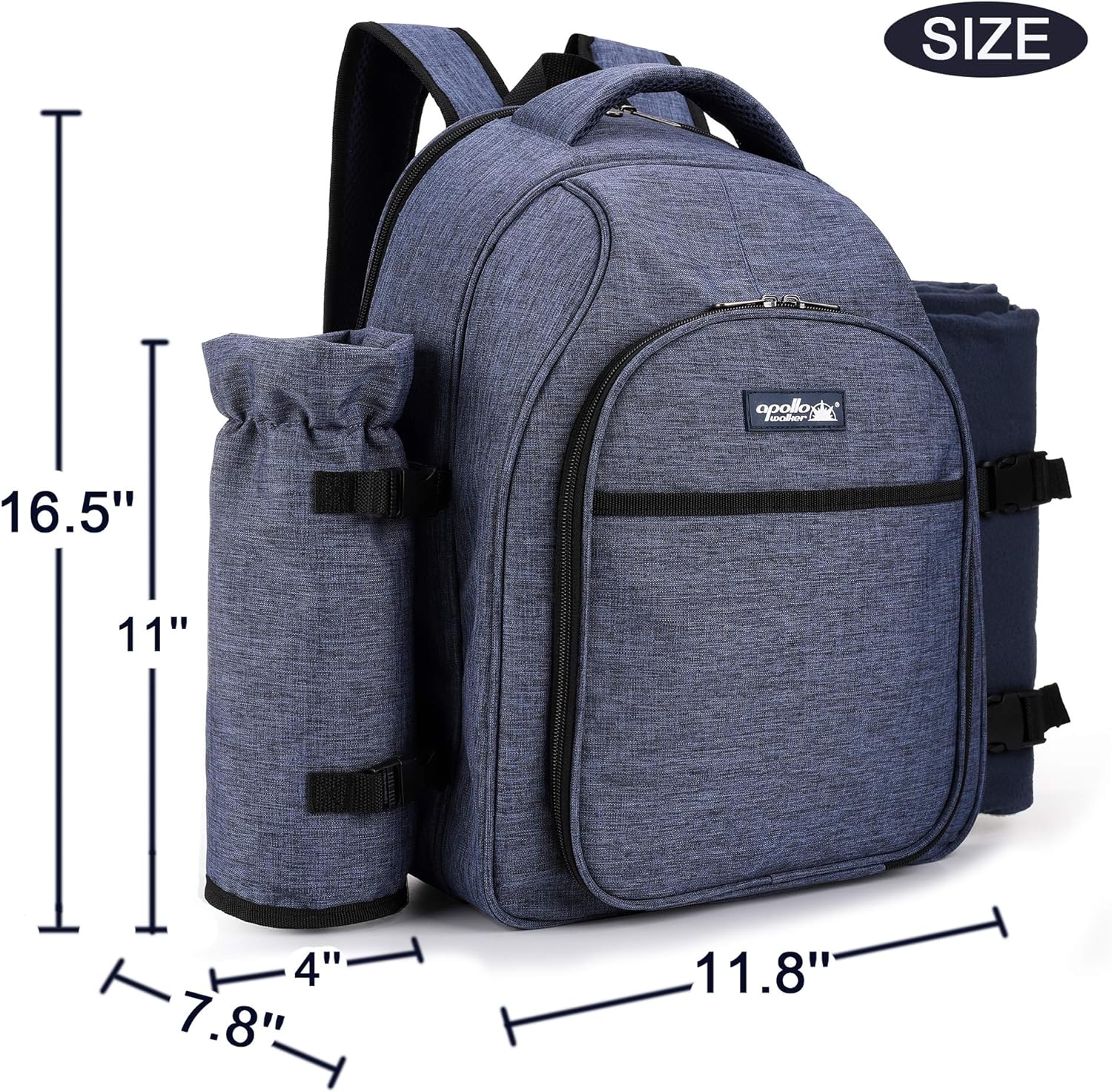 Apollo Walker Picnic Backpack Bag for 2 Person with Cooler Compartment, Detachable Bottle/Wine Holder, Fleece Blanket, Plates and Cutlery Set (2 Person, Navy)