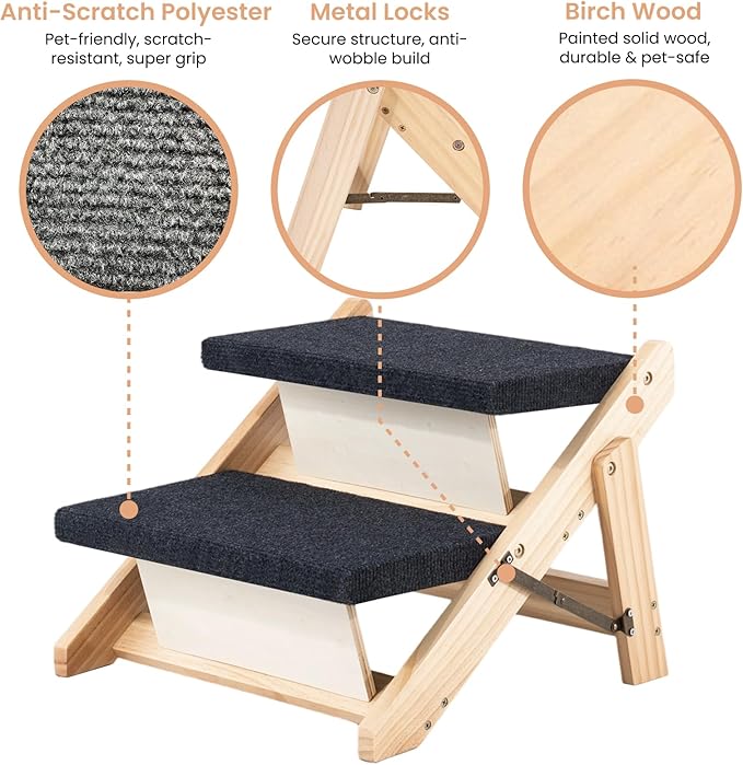 - 1. Adjustable 3-in-1 Ramp & Stairs Easily switch between stair and ramp mode to suit your pet’s needs. Whether for aging joints or tiny paws, our 3-in-1 foldable design (Stair / Ramp / Storage) ensures safe and comfy climbs.