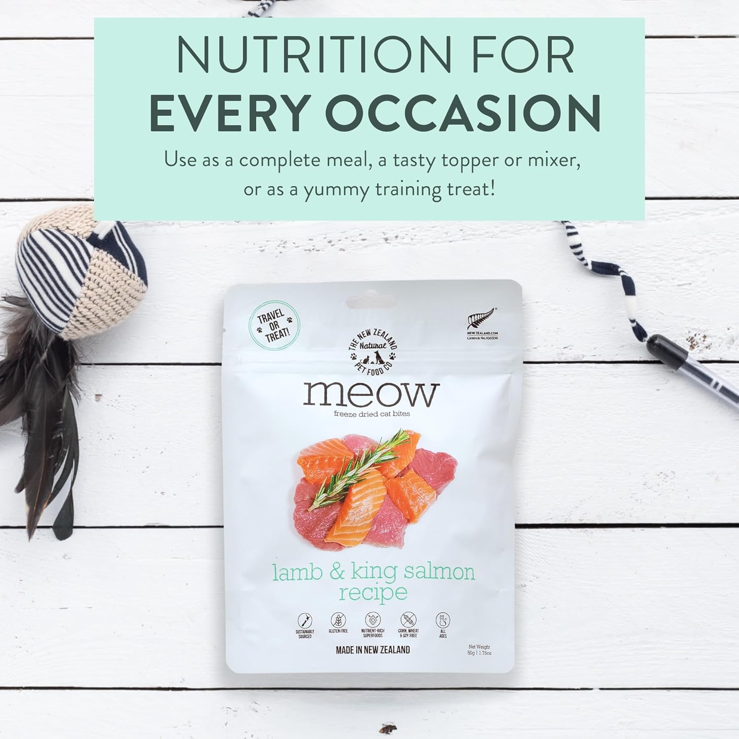 Meow Lamb & King Salmon Freeze Dried Raw Cat Food, Mixer, or Topper, or Treat - High Protein, Natural, Limited Ingredient Recipe 1.76 oz