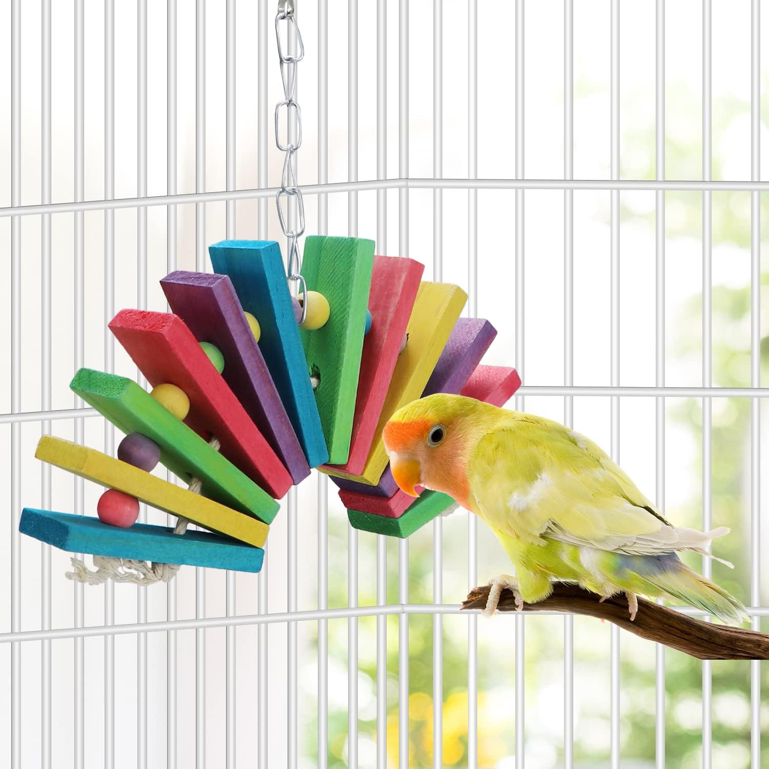 Litewoo Bird Parrot Parakeet Toys, Colorful Bite Wood Swing Toy for Small Medium Parakeet Cockatiel Budgie Cockatoo Macaw Conure Parrot(A)