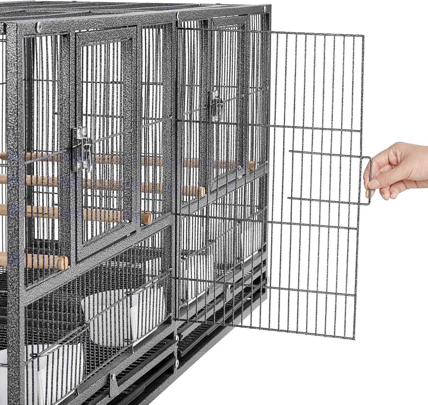 - Sturdy Metal Construction: Constructed of wrought iron coated with oxidant-and water-resistant hammered paint, this divided breeder cage boasts excellent strength and durability, ready for your birds to use for years to come