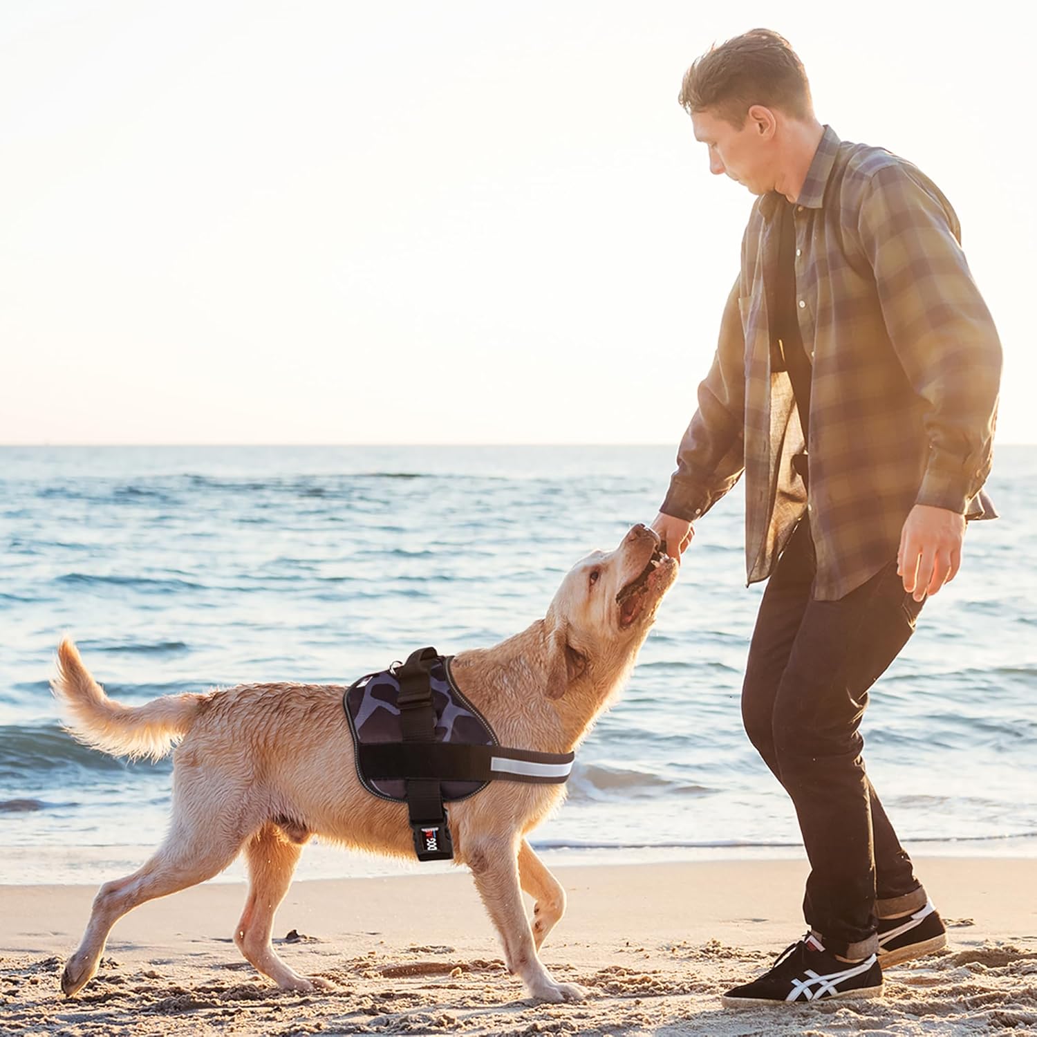 Dogline Dog Harness, Reflective No-Pull Adjustable Vest with Handle for Walking, Training, Breathable, No - Choke Harness for Small, Medium or Large Dogs Room for Patches Girraffe Grey S 18"-24"