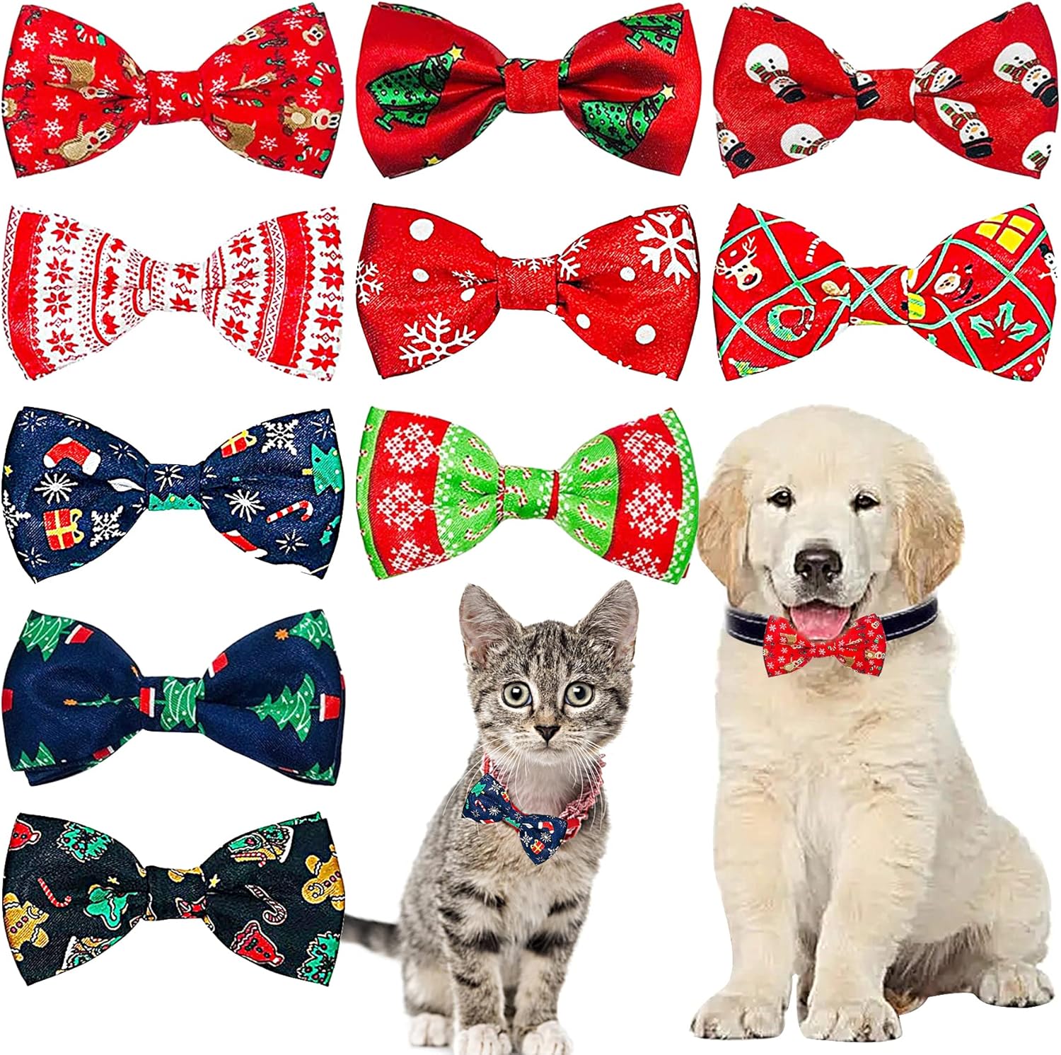 PET SHOW 10pcs/Pack 3.5 * 1.7" Christmas Small Dogs Collar Attachment Bow Ties Xmas Parties Puppies Cats Collar Charms Accessories Slides Bowties Assorted