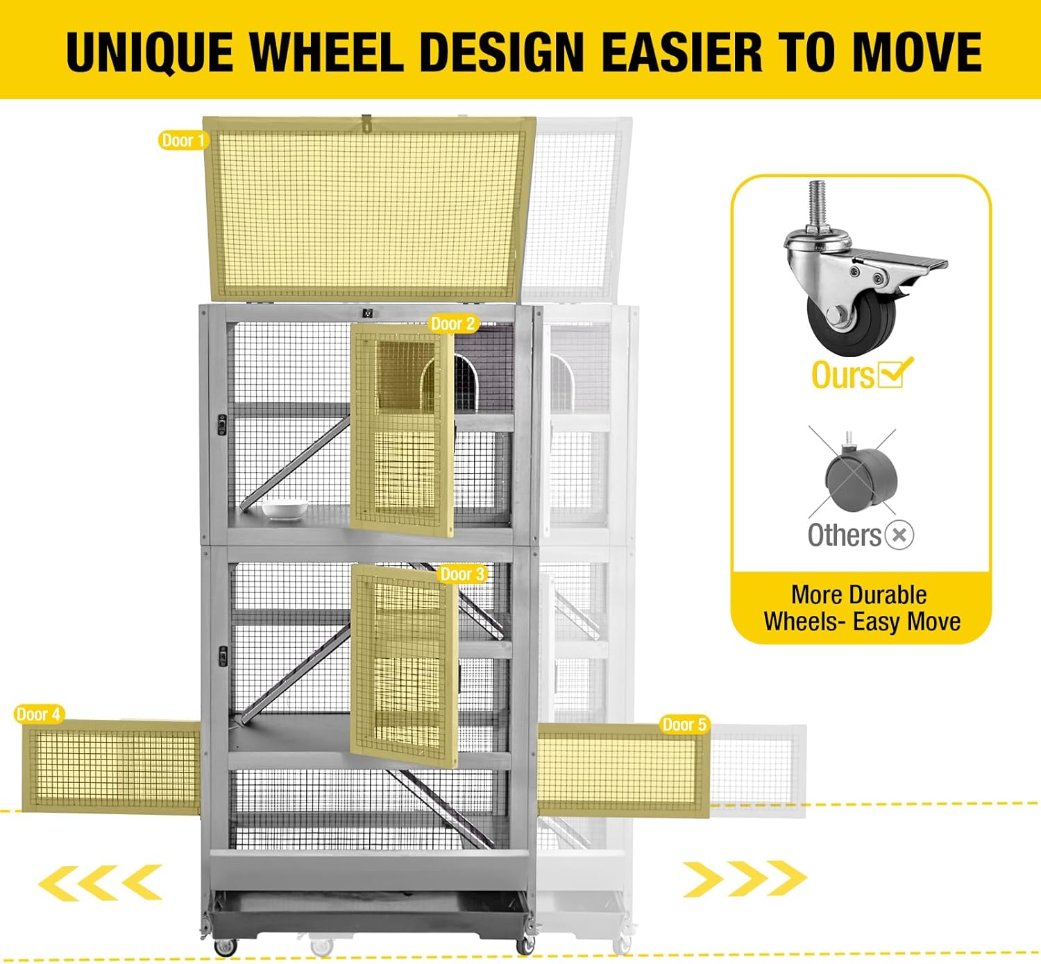 - Upgraded Deluxe rat cage comes with 5 Levels connect with 4 ramps provides spacious room for exploring and climbing, the small resting house making much fun for your pets