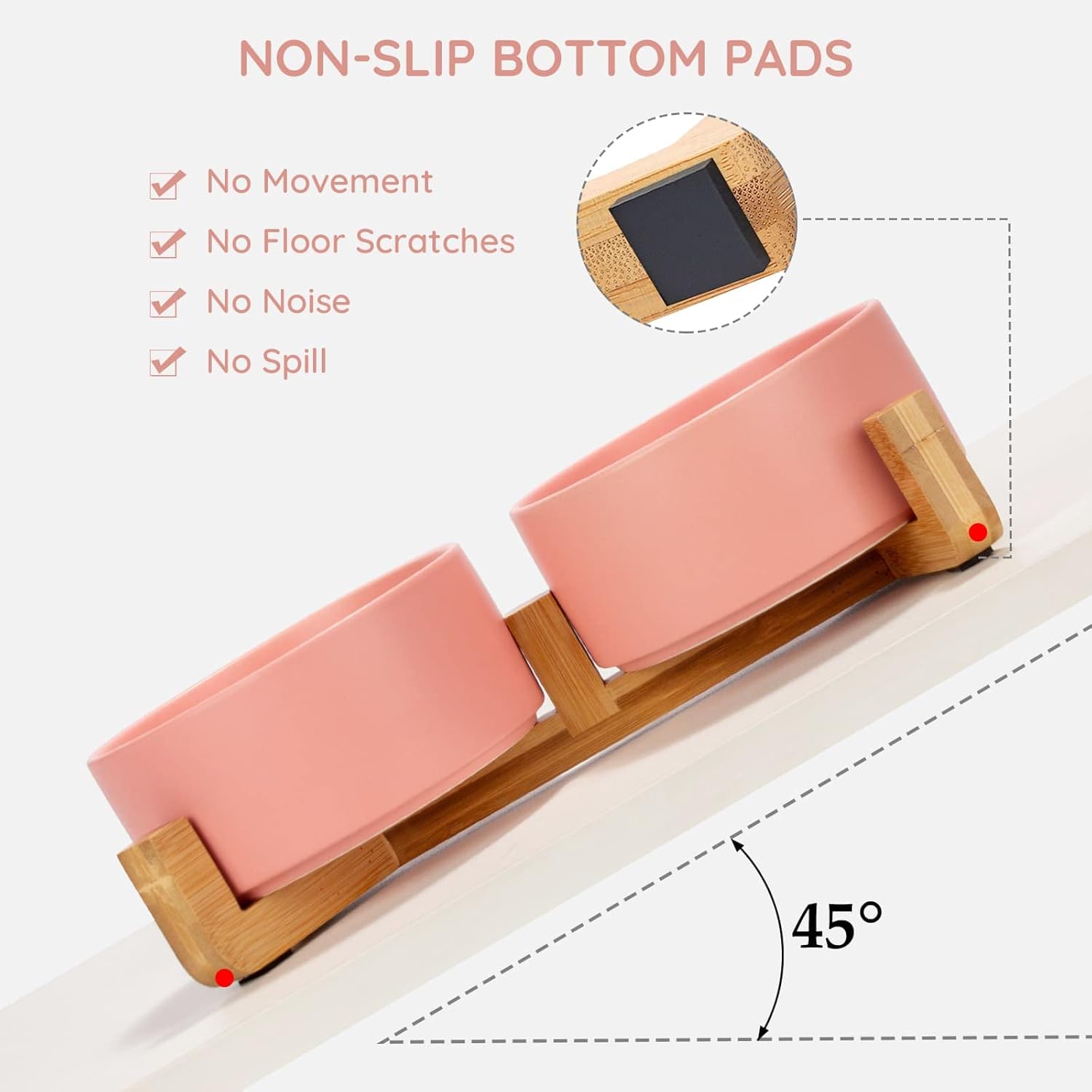 • Natural Wooden Stand:Unique wooden stand can effectively prevent food from spilling and keep the floor clean and tidy. Non-Slip bowl base, making it easy to pick up and put down