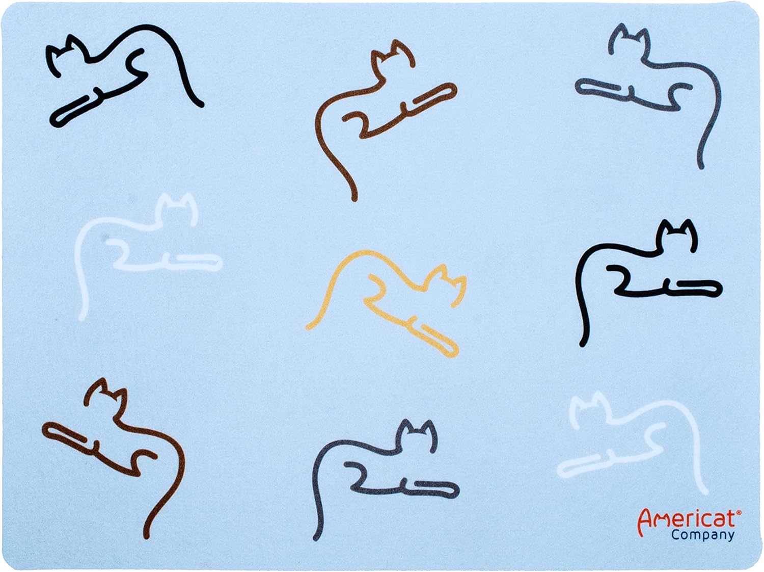 - PLACEMAT SIZE: 16 x 12 inches. Space for indoor cats and kittens to use a single bowl, multiple bowls, or fountain. Blue gray background with cat design. Pair with Americat Company bowls and raised stands