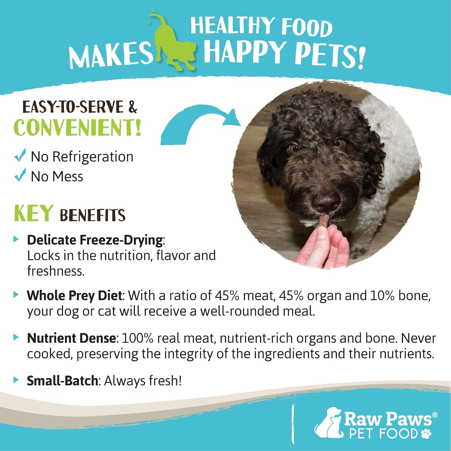 - FREEZE DRIED RAW DOG FOOD: The gentle freeze drying process used for Raw Paws freeze dried rabbit dog food and cat food seals in all the flavor, enzymes and nutrition of raw rabbit meat for cats! Feed your pets rabbit cat food and dog food for the benefits of raw nutrition without the mess!