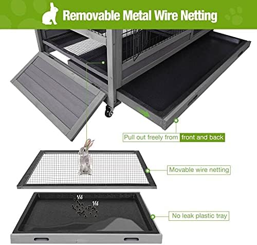 - Bunny hutch with four strong metal wheels to quickly move the small animal cage indoor outdoor, 2 of them are brakes to fix well and keep safe.