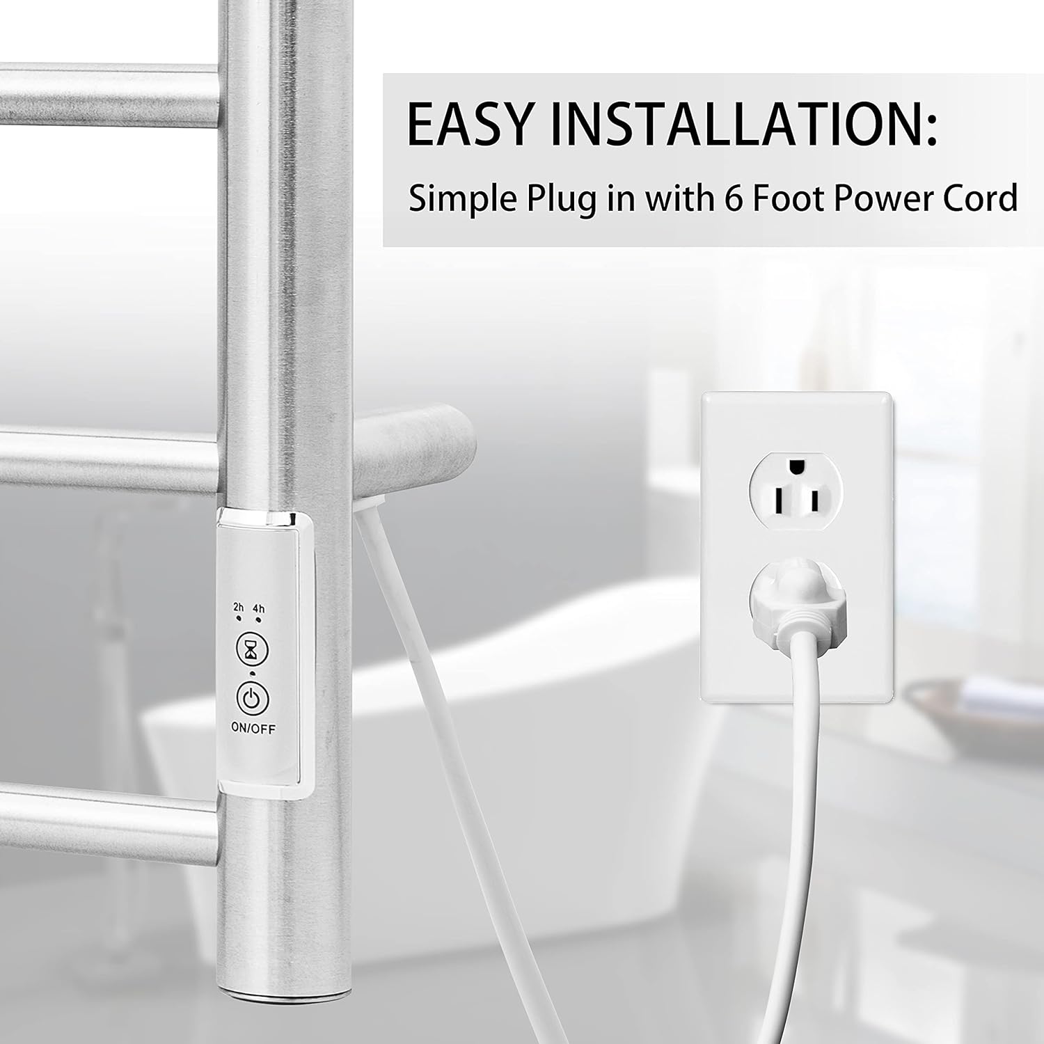KEG Towel Warmer Wall Mounted with Built-in Timer 4 Bars Electric Stainless Steel Heated Towel Racks for Bathroom, Hot Plug-in Bath Towel Heater Brushed Nickel