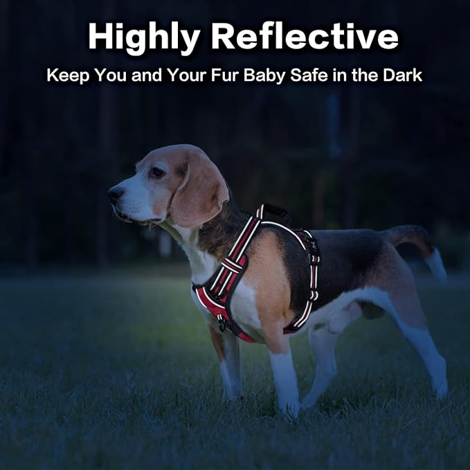 PoyPet No Pull Dog Harness, No Choke Front Clip Reflective Dog Vest with Soft Padded Vertical Handle, 3 Leash Attachments for Small Medium Large Dogs (Red,M)