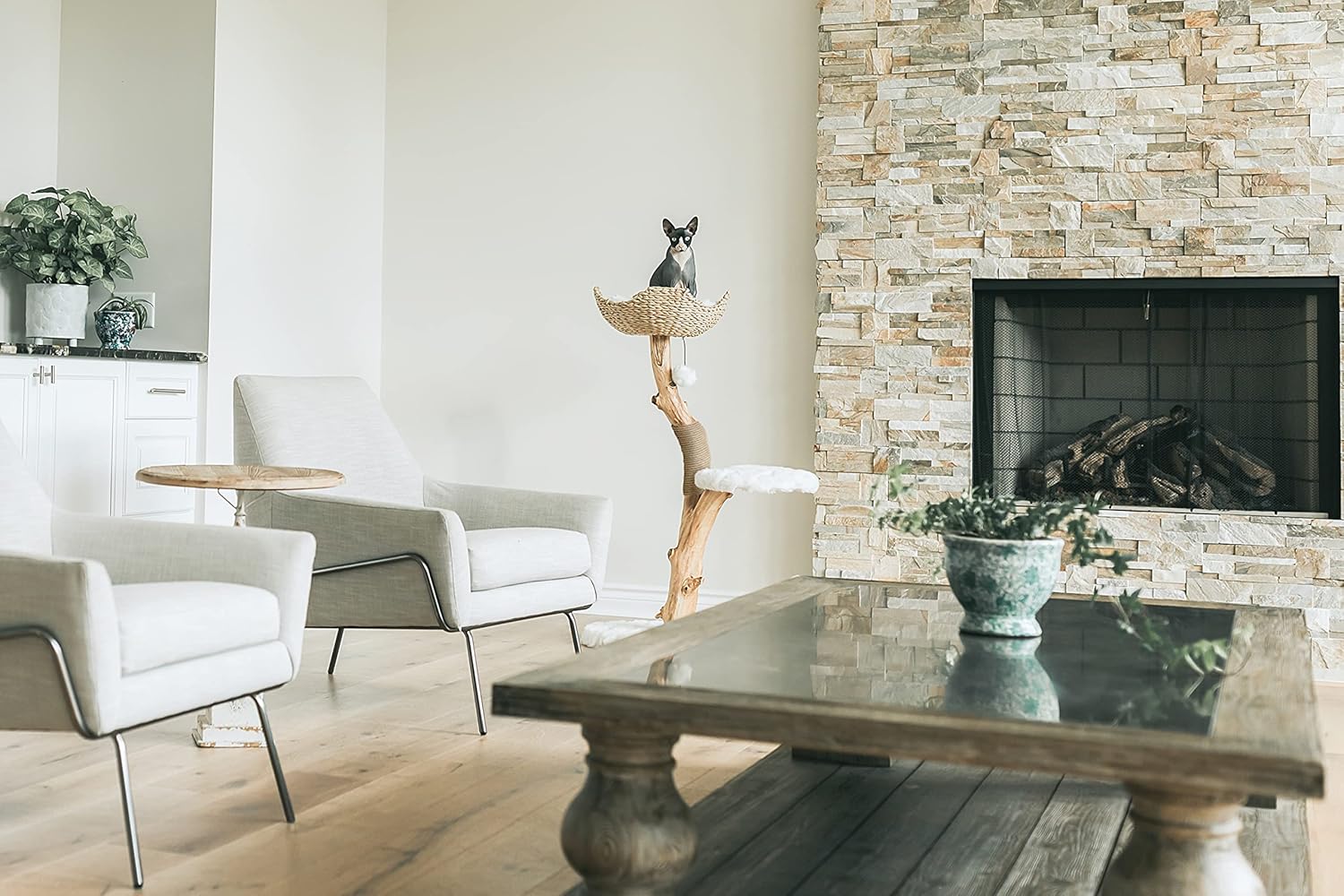Wooden Cat Climbing Tree Tower, Modern Single Branch Cat Condo, Wood, Cat Lover Furniture Gift by MAU LIFESTYLE (Alpine White)