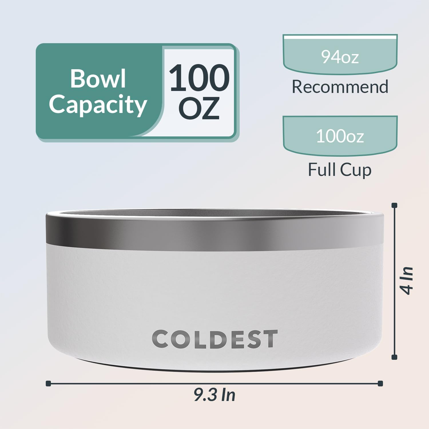 Coldest Dog Bowl - Anti Rust Metal, Non Slip, 3 Layers Insulated Stainless Steel Dog Bowls - Spill Proof & Heavy Duty - Water Bowl for Dogs, Cats & Pets, Dish Washer Safe (100 oz, Epic White)