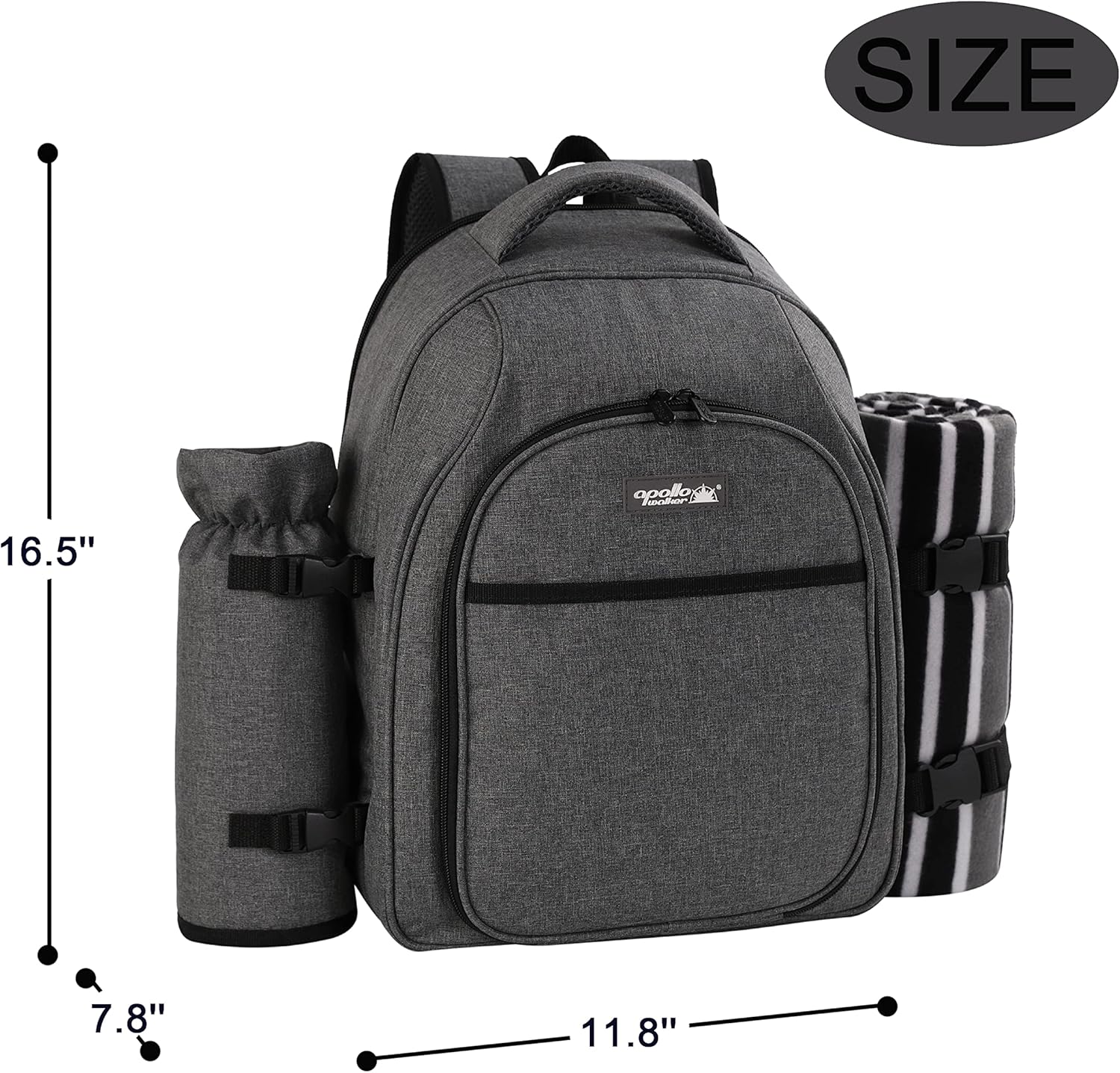 apollo walker Picnic Backpack Bag for 2 Person with Cooler Compartment, Detachable Bottle/Wine Holder, Fleece Blanket, Plates and Cutlery Set (2Person,Grey)