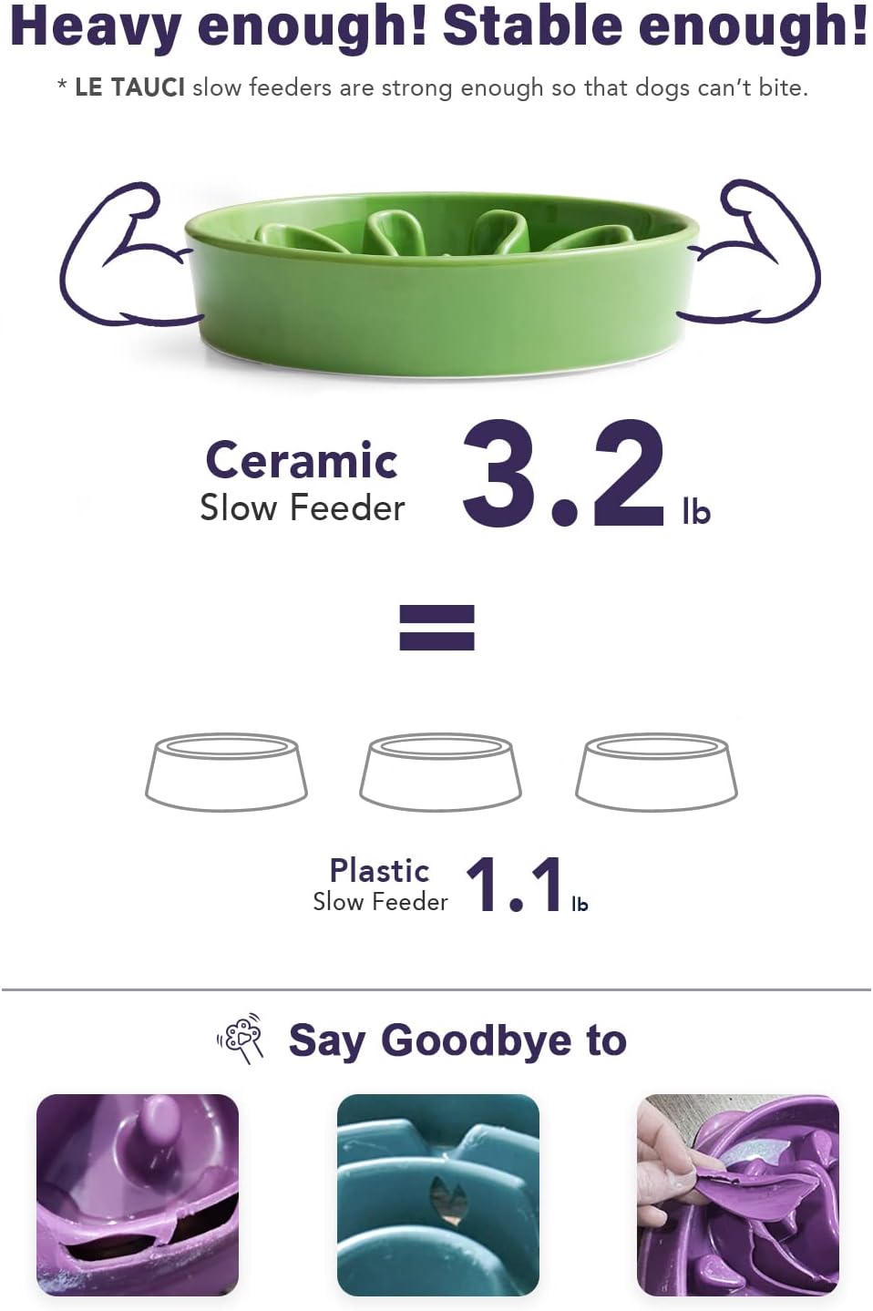 LE TAUCI Slow Feeder Dog Bowls Ceramic, 1.5 Cups Dog Food Bowl, Puppy Slow Feeder Dish for Fast Eaters, Clover Green