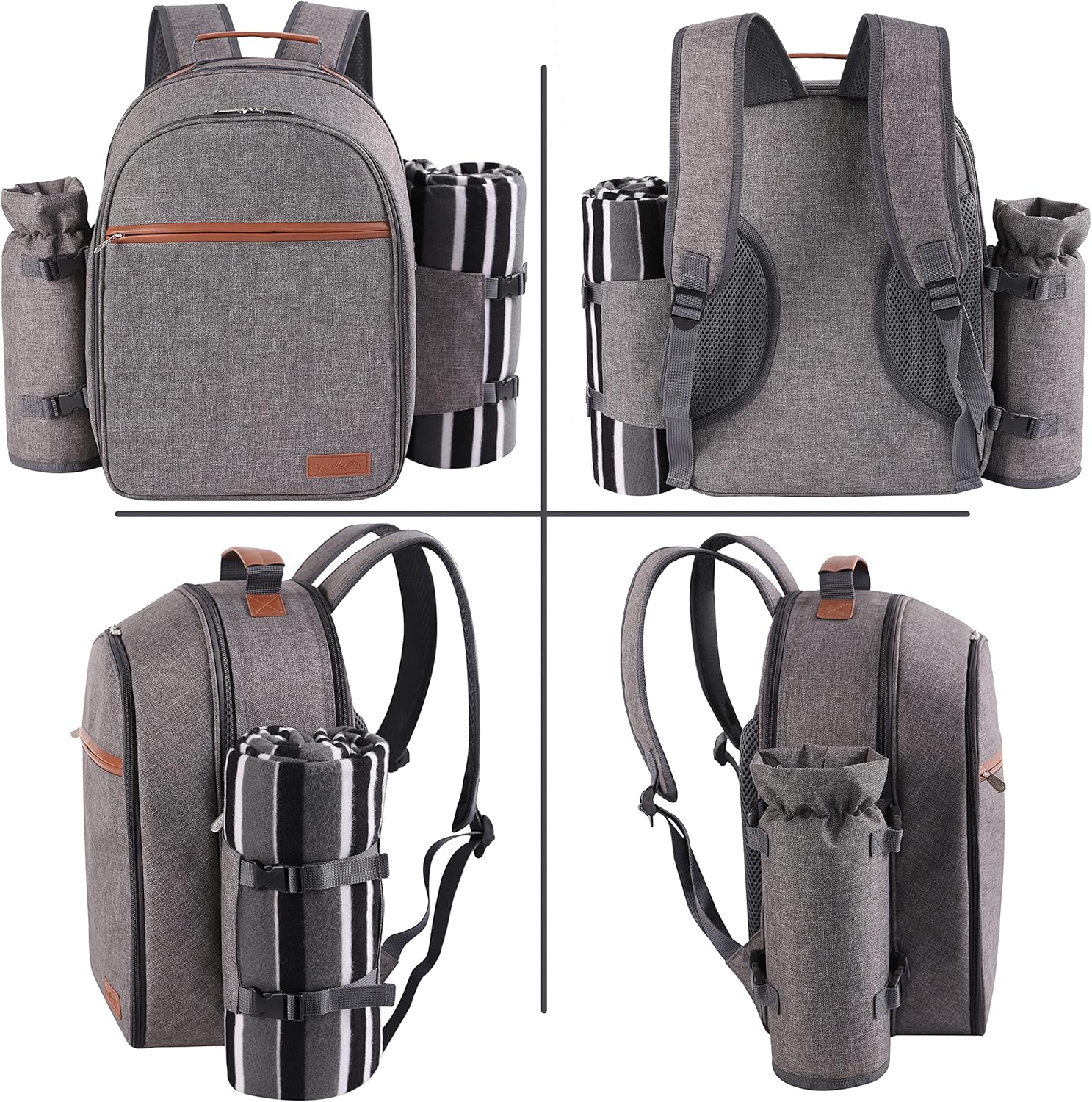 Apollo Walker Picnic Backpack Set for 2 Person with Cooler Compartment, Detachable Bottle/Wine Holder, Fleece Blanket, Plates and Cutlery Set