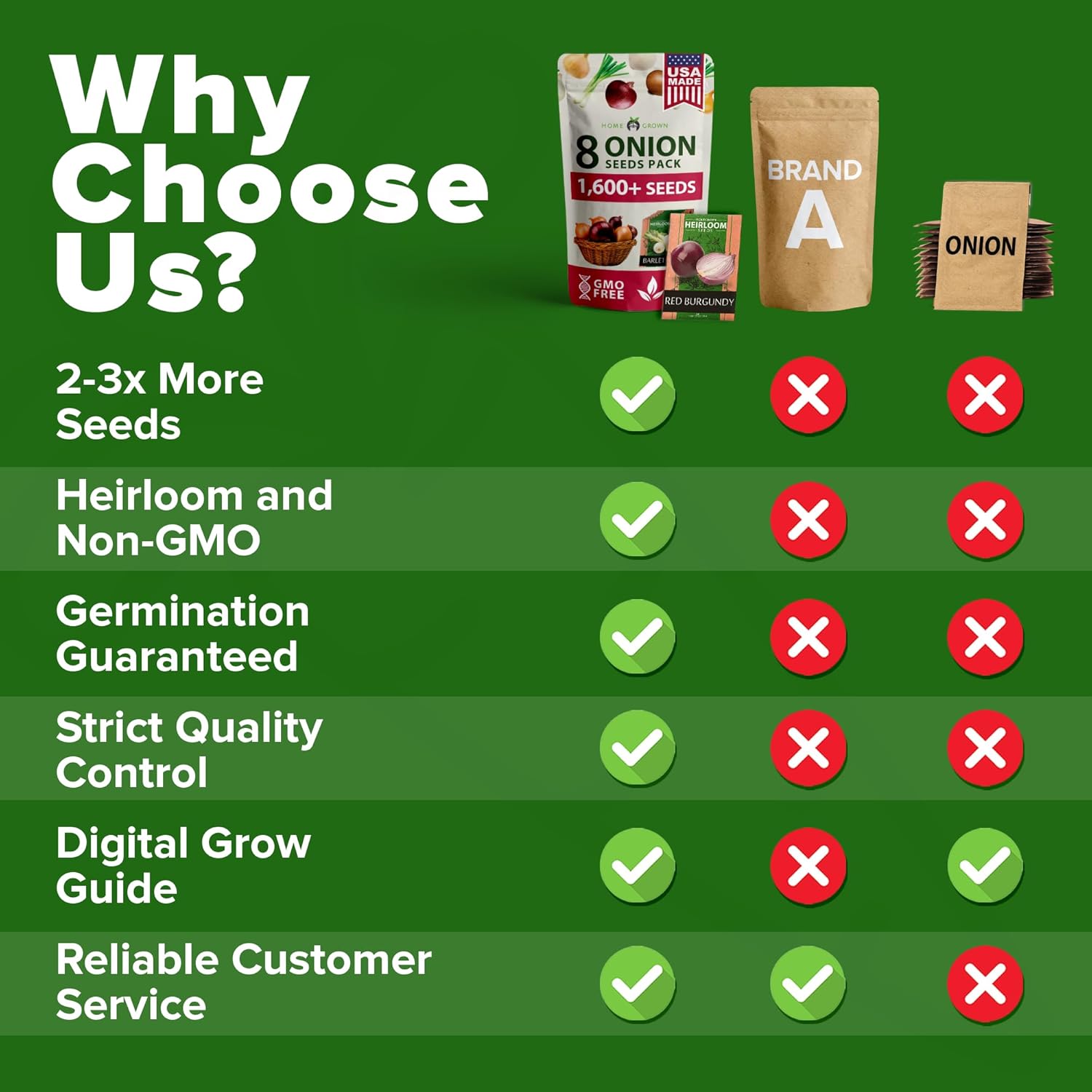 HOME GROWN π¨π¦π π£π₯ππ ππ¨π 8 Onion Seeds for Planting β 1,600 Heirloom π‘π’π‘-ππ π’ Vegetable Seeds β Grow Sweet, Yellow, Red, Spanish, Green & Vidalia Onions in Outdoor or Indoor Home Garden
