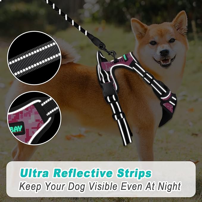BARKBAY No Pull Dog Harness Large Step in Reflective Dog Harness with Front Clip and Easy Control Handle for Walking Training Running(Pink camo,S)