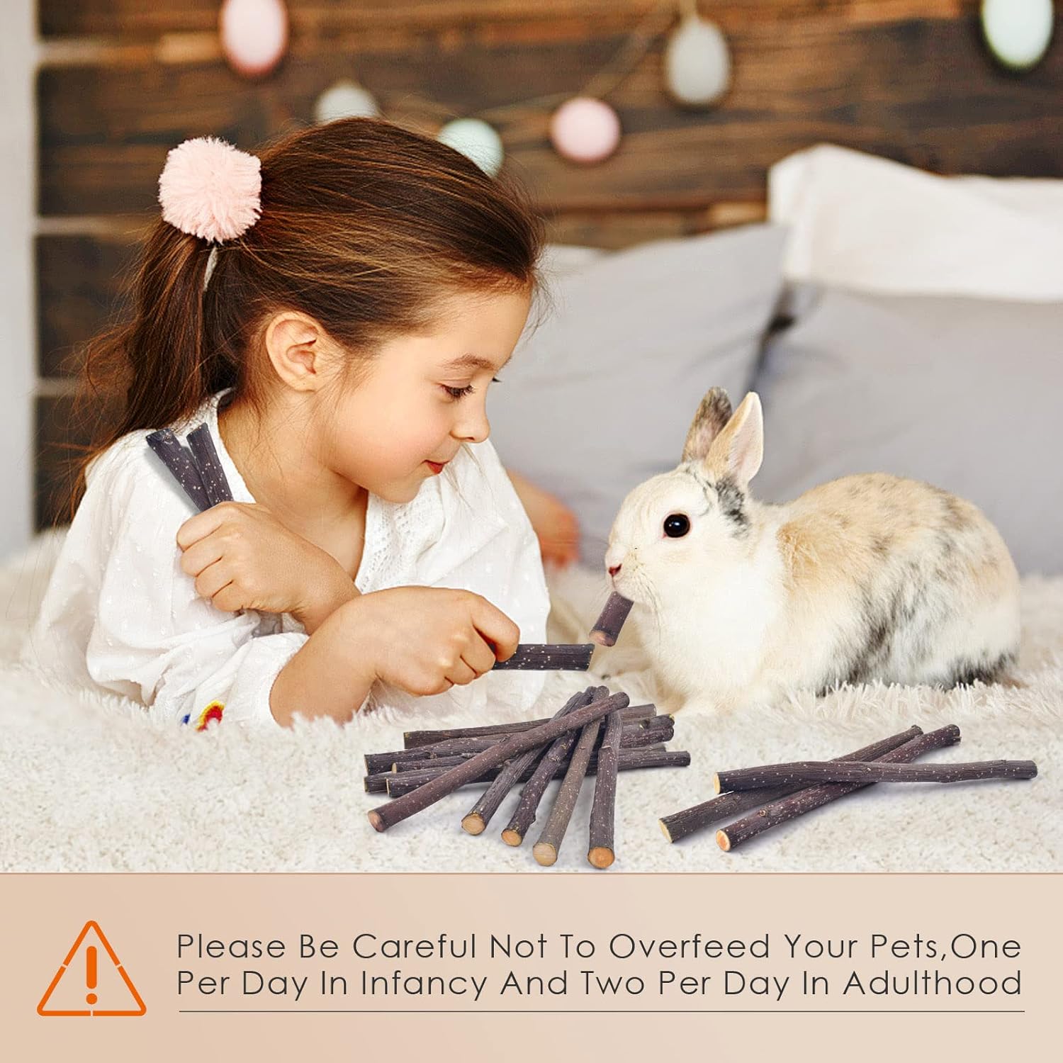- Designed for Small Animals: Chew sticks are suitable for guinea pigs, chinchillas, squirrels, rabbits, parrots, hamsters, degus, gerbils and other rodents. Rabbit treats will provide hours of fun for your animal. Let the long-lost critters in the cage no longer be bored and anxious.