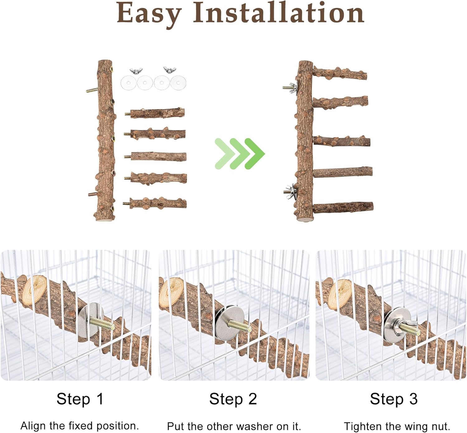 - 【Easy Installation】: The bird perches are suitable for all bird cages. Each bird perch stand toy is equipped with built-in bolt and wing nut, super easy to install and dismantle. Once intalled it will not fall off from the cage, safe for birds to rest or play on.