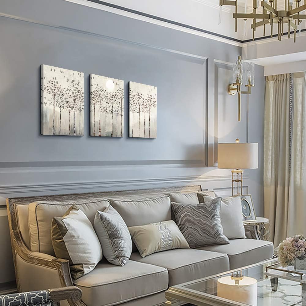 Trees And Birds Abstract Paintings Canvas Prints Wall Art For Bedroom Bathroom Wall Decor Office Artworks Pictures Wall Decorations For Living Room,3 Piece Sunrise And Sunset Modern Home Decoration