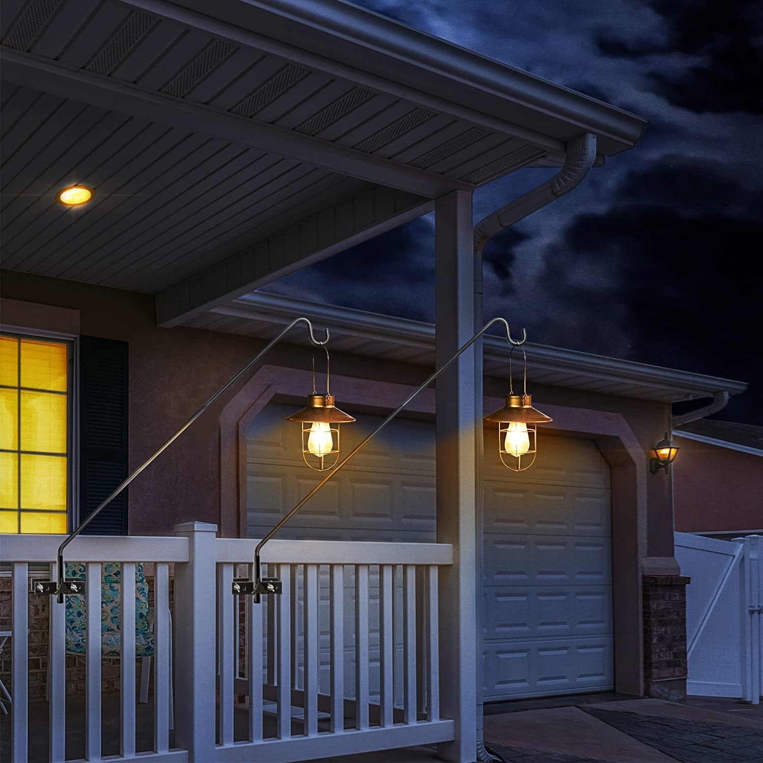 2 Packs Extended Fence Deck Heavy Duty Bird Feeder Hook, 360 Degree Rotary and Length Adjustable Plant Bracket for Bird Feeders Planters Suet Baskets Lanterns Wind Chimes and More