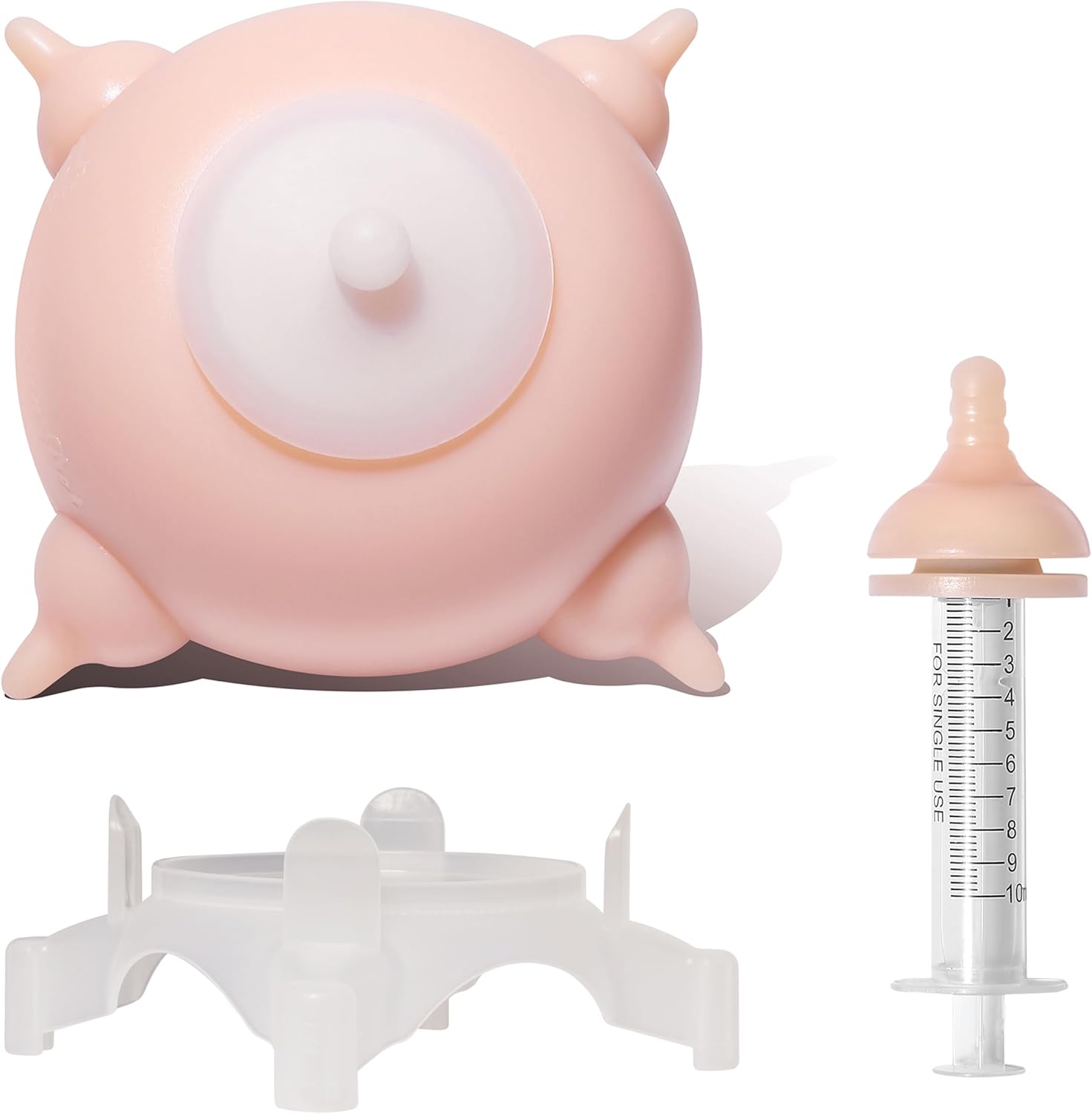 - We also provide a base for the milk feeder, which can increase the height of the milk feeder and is suitable for comfortable use by puppies at different stages. At the same time, we also provide a separate nipple that can be used with a 10ML syringe for precise control of milk volume. If you're willing, hold the milk feeder in your hands and use it like a puppy bottle, because the biomimetic soft nipple will make puppies love to drink milk more