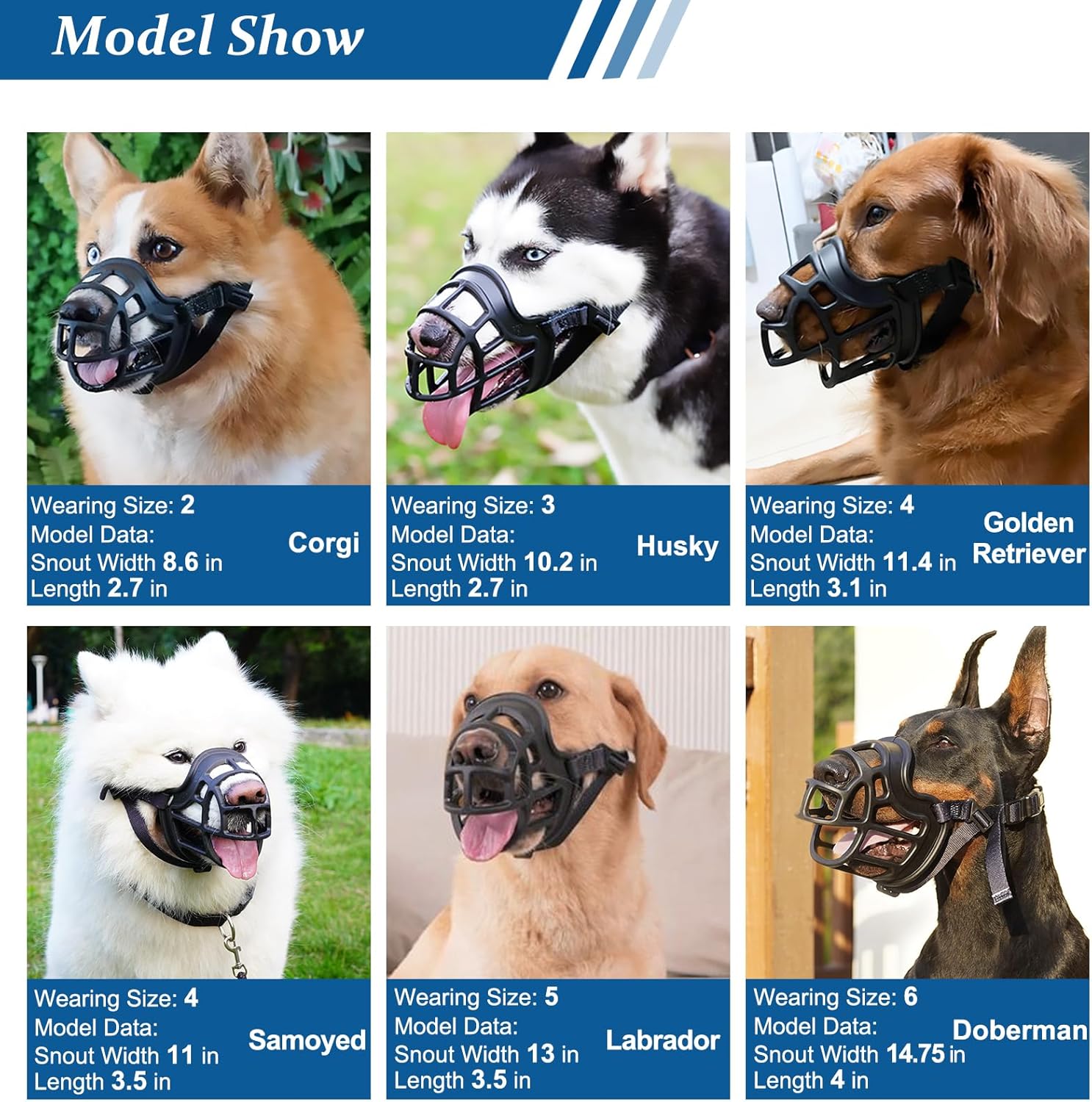 - SAFETY BASKET MUZZLE: Basket dog mouth cover design gives all-around snout protection, prevents biting, chewing, scavenging, and perfectly solve the problem that traditional muzzle can’t let dogs drink and being feed. Well used for safe public socialization, safe handling during vet visits, grooming or dog traveling