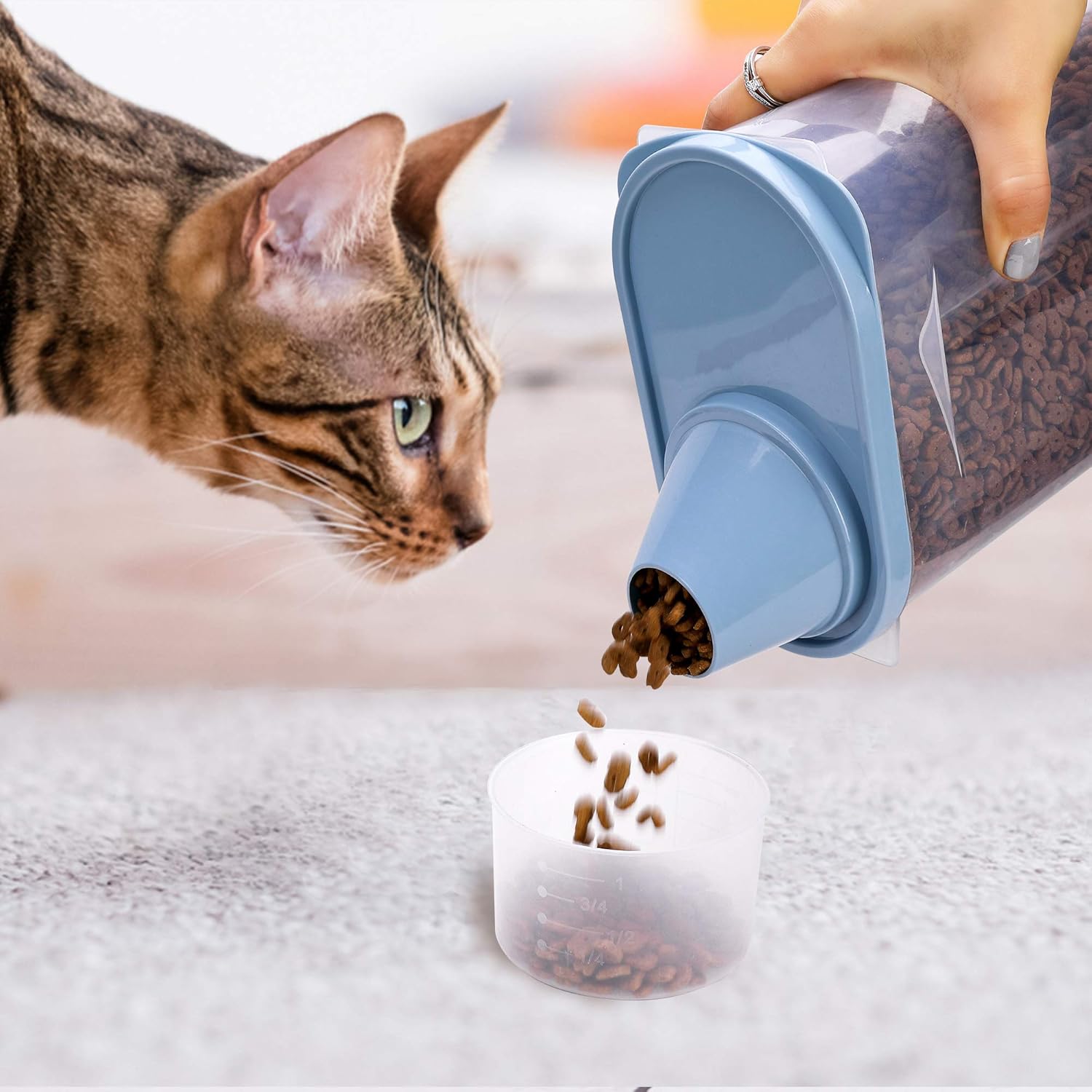 - [THE SHAPE OF FOOD STORAGE]- Designed for easy access to pet food for pouring.And the translucent body makes food be checked at a glance.