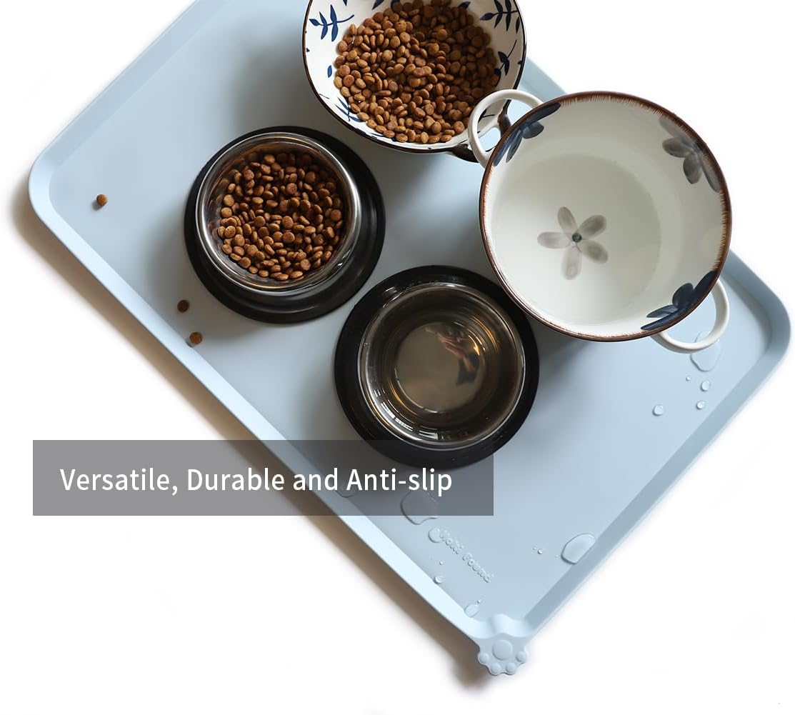 Hoki Found Large Silicone Pet Food Mats Tray - Non Slip Pet Bowl Mats Placemat - Dog Pet Cat Feeding Mat - Waterproof Dog Cat Food Mats -Pet Water Mats for Floors - Frost