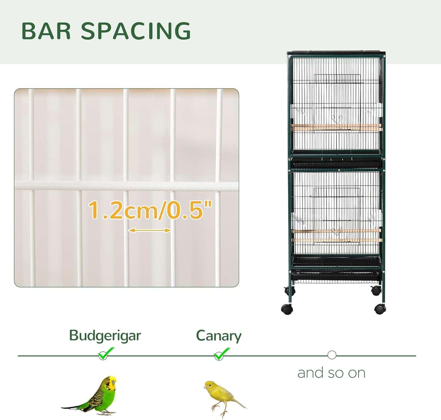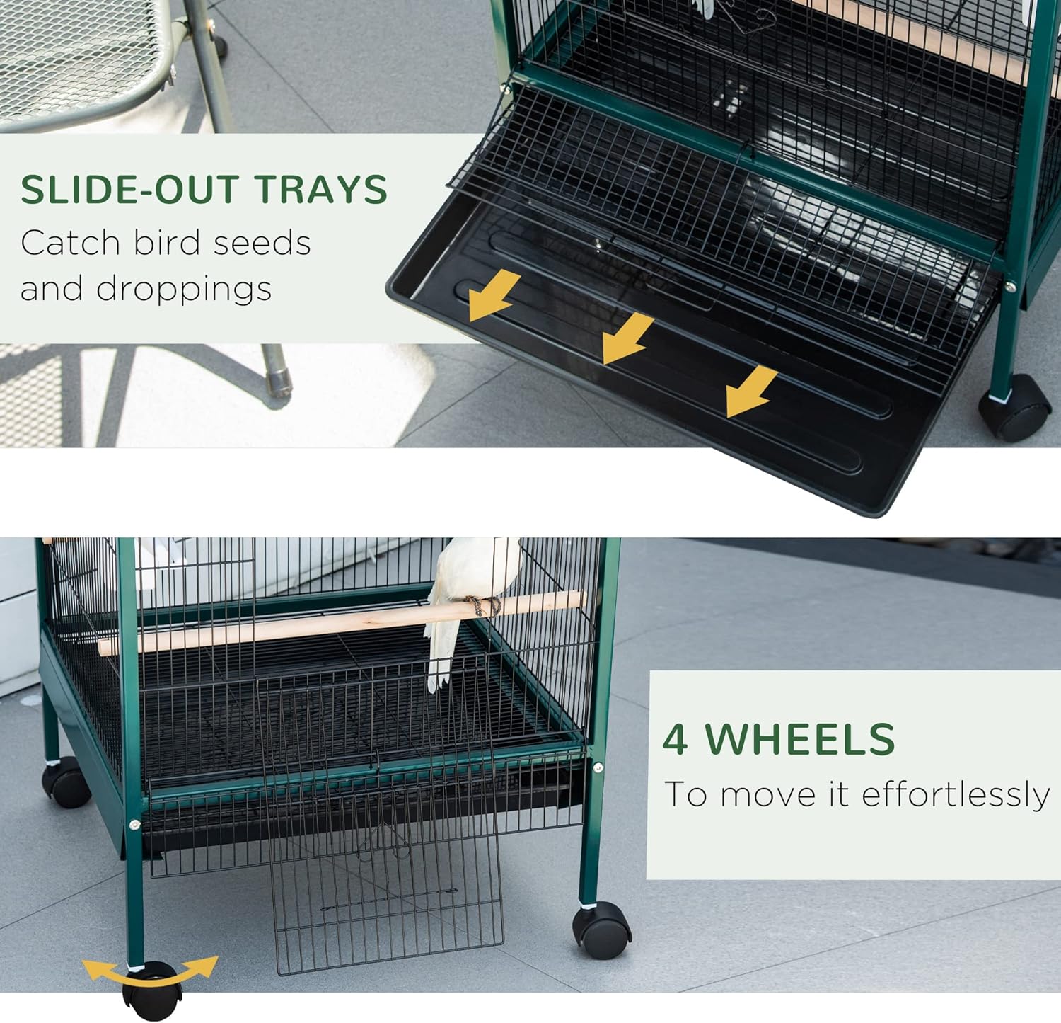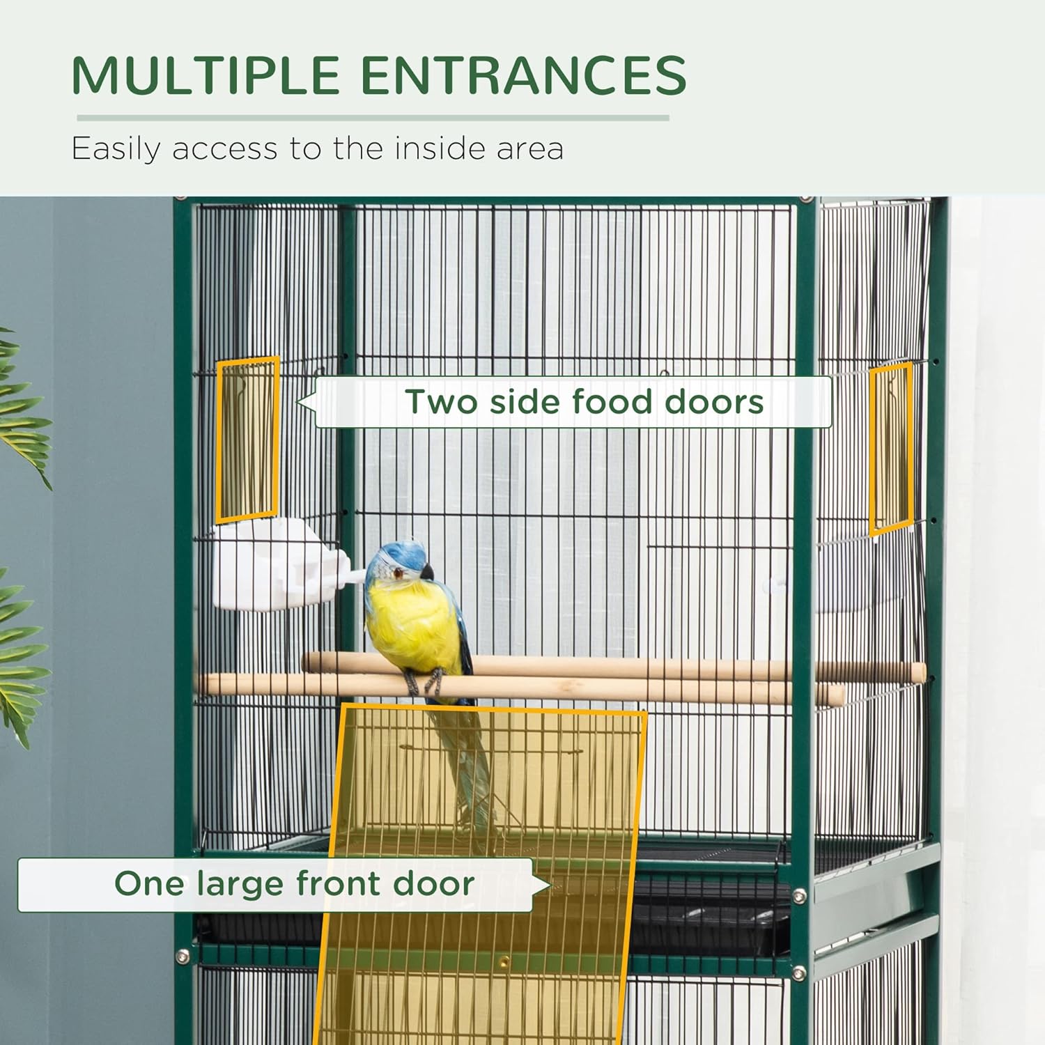 PawHut Large Bird Cage with 1.7 ft. Width for Wingspan, Bird Aviary Indoor with Multi-Door Design, Fit for a Canary, Finch, Conure, 55", Green