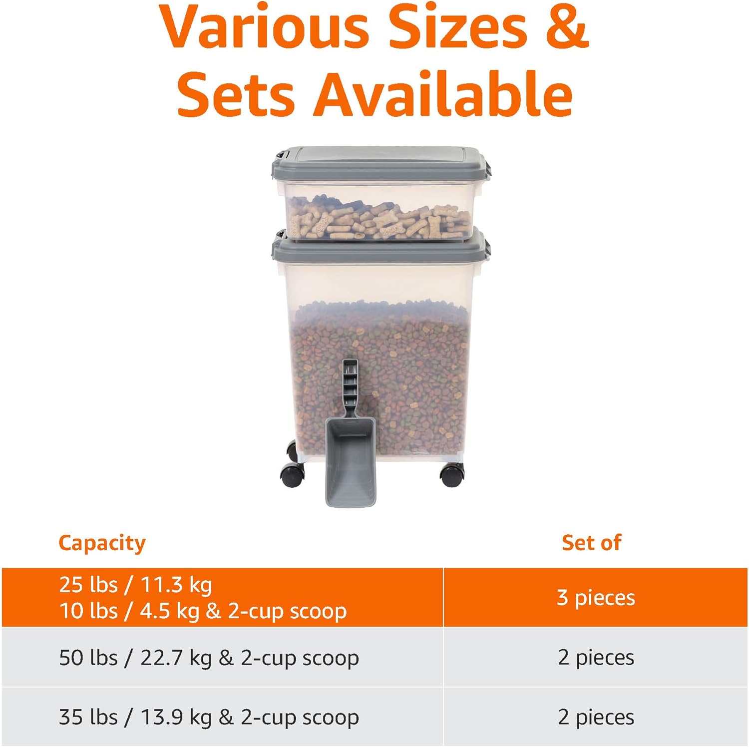 Amazon Basics 3-Piece Airtight Dog Food Storage Container Combo with Scoop, 33 QT + 12 QT