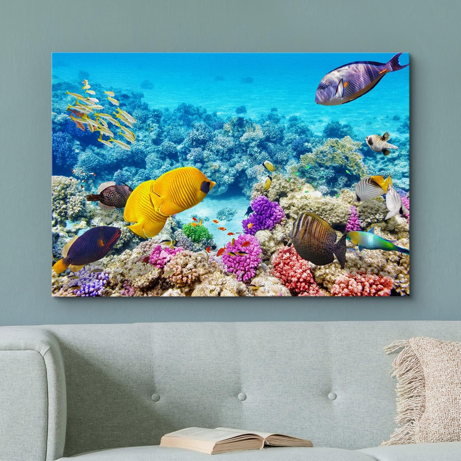 wall26 Canvas Print Wall Art Vibrant Teal Underwater Fish Coral Reef Nature Animals Photography Realism Rustic Scenic Landscape Wilderness Earth Colorful for Living Room, Bedroom, Office - 16"x24"