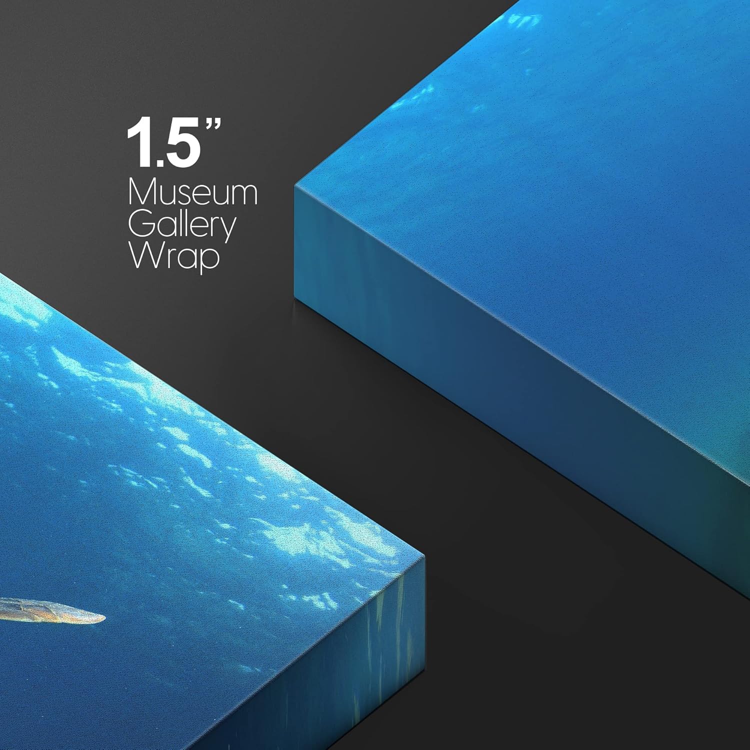 wall26 - Green Sea Turtle in Deep Ocean Sea Canvas Art Wall Art - 32"x48"