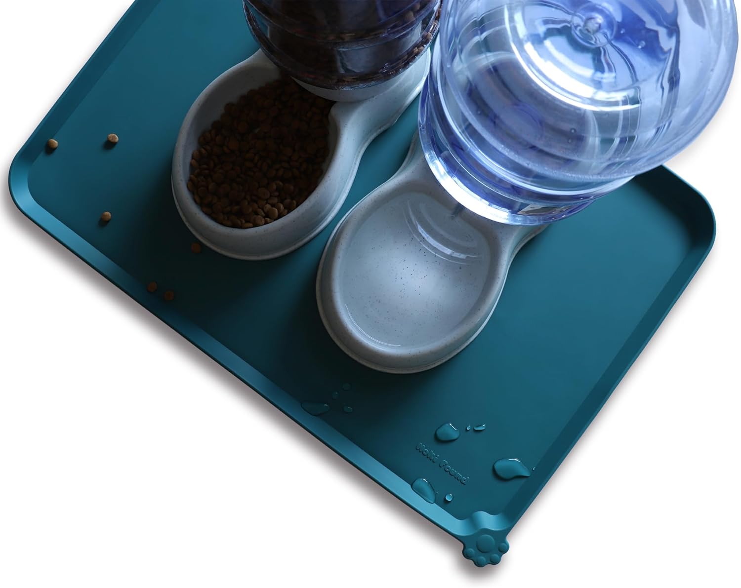 Hoki Found Large Silicone Pet Food Mats Tray - Non Slip Pet Dog Cat Bowl Mats Placemat - Dog Pet Cat Feeding Mat - Waterproof Dog Cat Food Mats -Pet Water Mats for Carpet - Sicilian Ocean