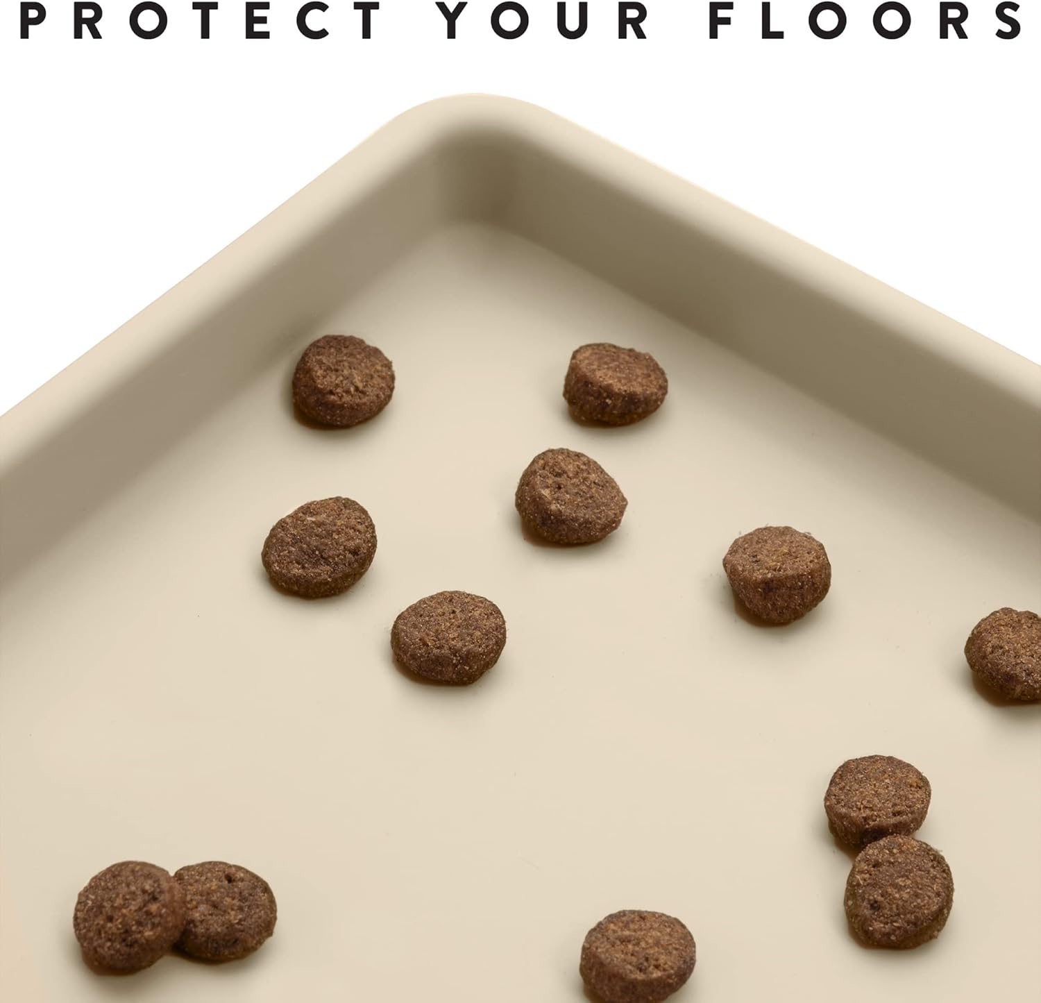 CatGuru Cat Food Mat, Small & Large Pet Feedingd Mat, 100% Waterproof Cat Mats for Food and Water, Silicone Mats for Pet Bowls, Non-Slip Placemat for Water Bowl or Fountain (Large, Sand)