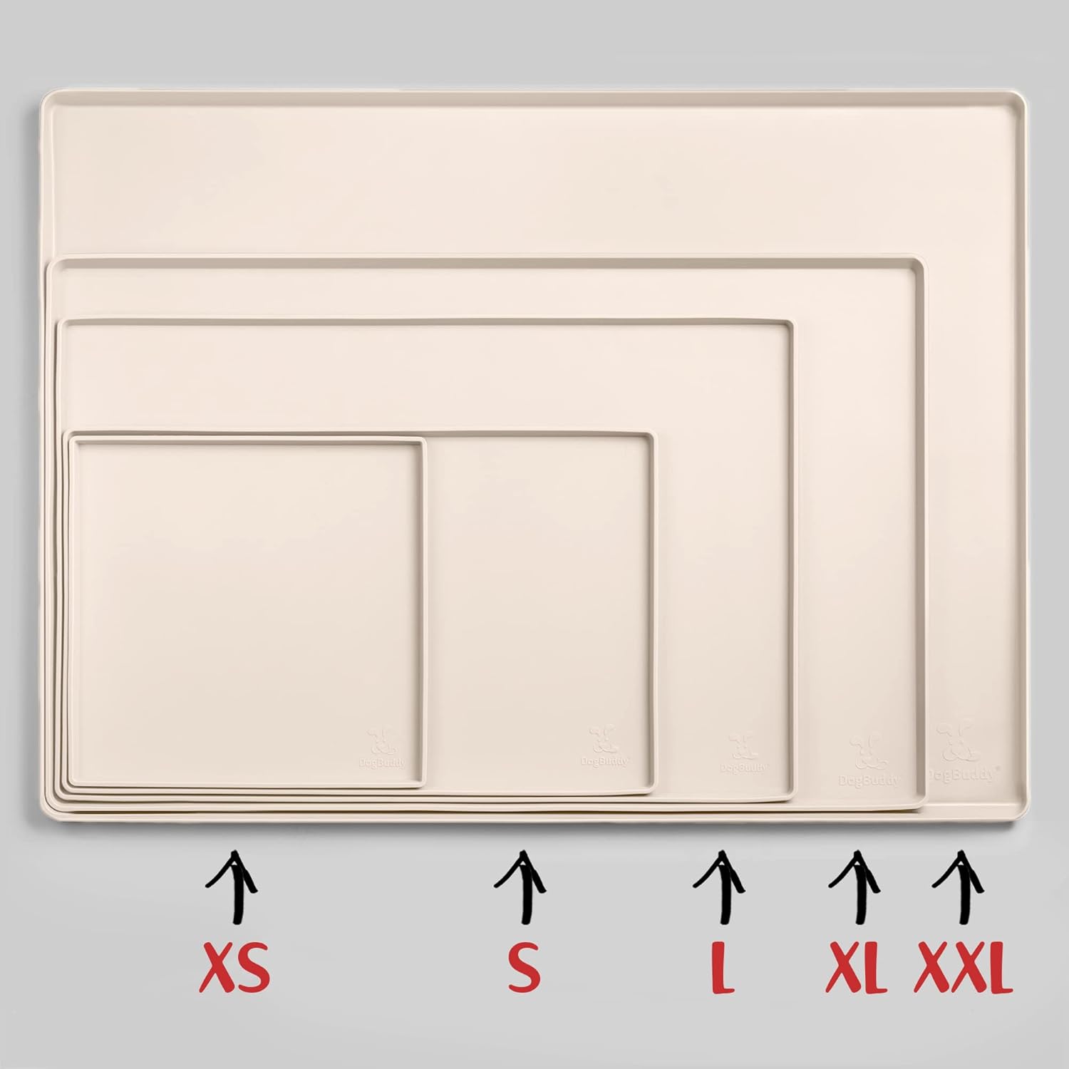 DogBuddy Dog Food Mat – Waterproof Dog Bowl Mat for Food and Water, Silicone Pet Feeding Mats for Floors, Non-Slip Placemat with High Edges for Dogs Bowls, Puppy Essentials (L: 24" x 16", Vanilla)