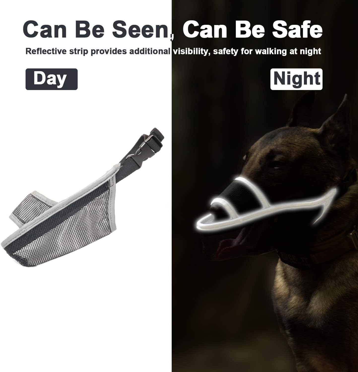 Crazy Felix Nylon Dog Muzzle for Small Medium Large Dogs Dachshund Beagle Poodle Labrador, Air Mesh Breathable and Drinkable Pet Mouth Guard for Anti-Biting Chewing Scavenging (XS, Reflective Trim)