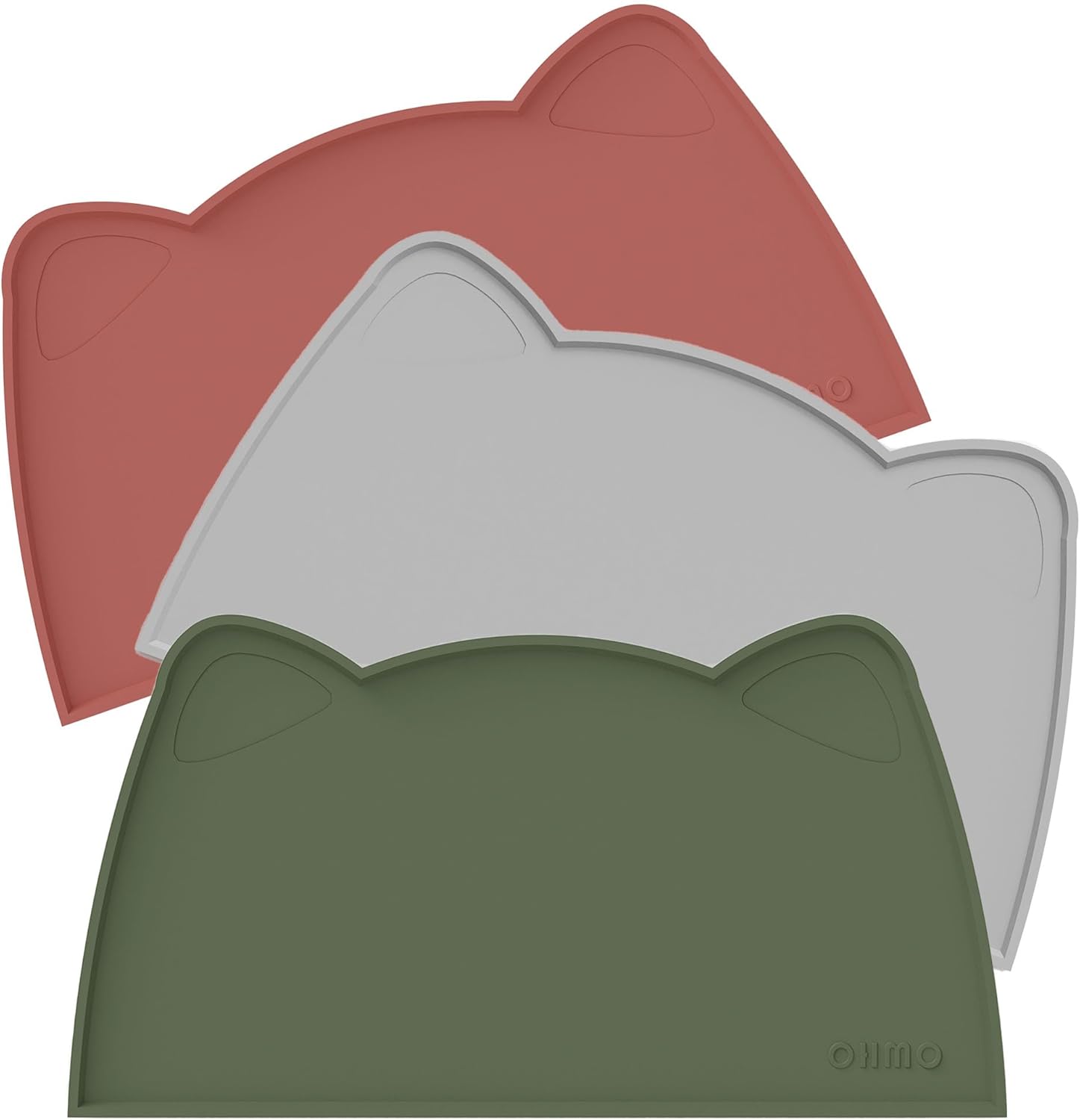 OHMO - Cat Food Mat, Silicone Pet Feeding Mat for Floor Non-Skid Waterproof Dog Water Bowl Tray, Easy to Clean Pet Placemat (Camo Green, 18 * 9.8'')