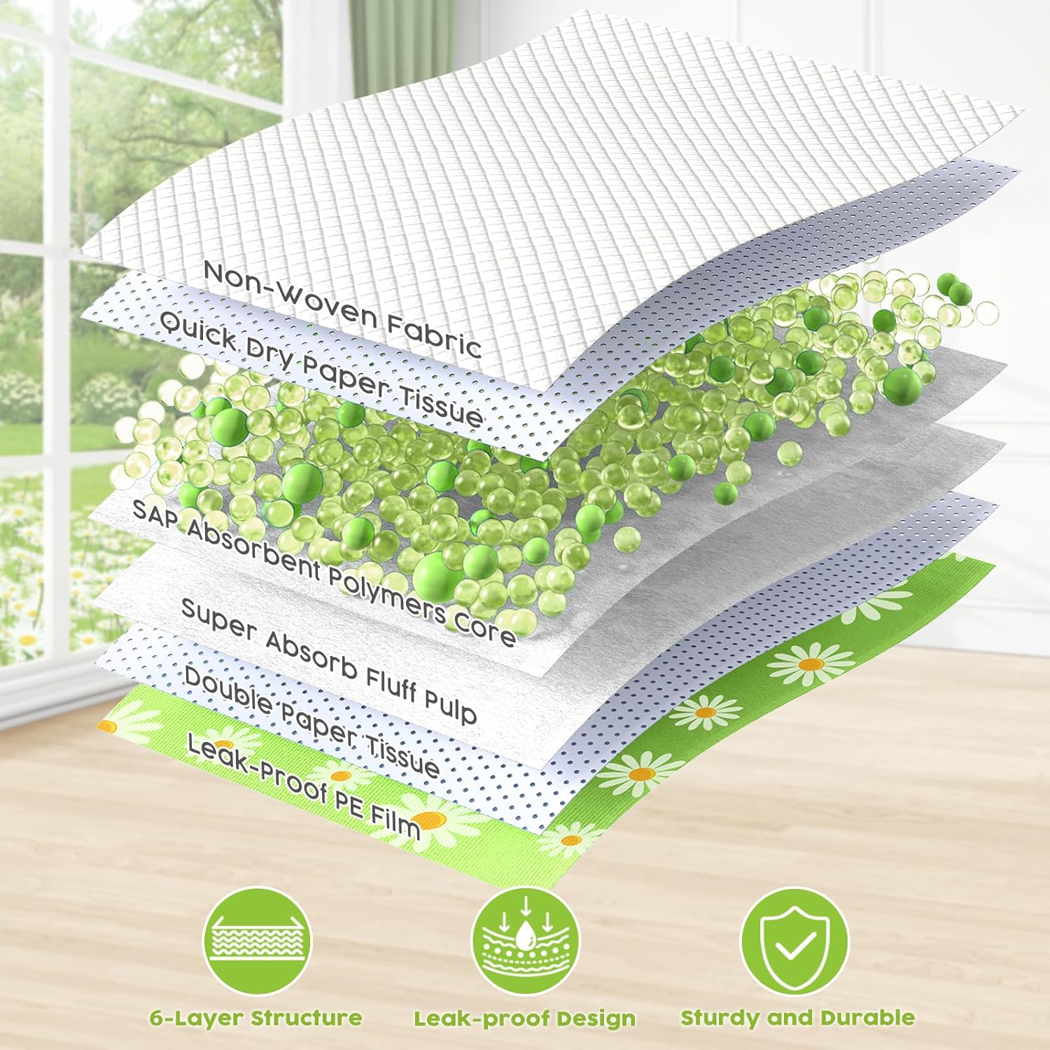 - 6-Layer Leak-Proof System: Our advanced design features a quick-dry top layer, a super-absorbent core that turns liquid into gel, and a leak-proof backing to lock in moisture