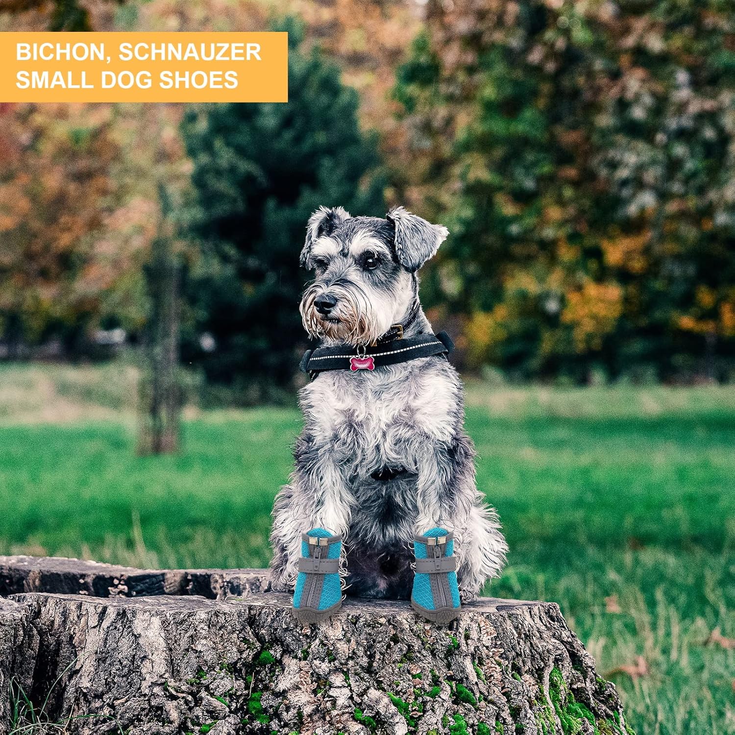 Dog Shoes for Small Dogs, Puppy Dog Boots & Paw Protector for Winter Snow Day, Summer Hot Pavement, Waterproof in Rain Weather, Ourdoor Hiking, Indoor Hardfloors with Anti Slip Sole 4PCS