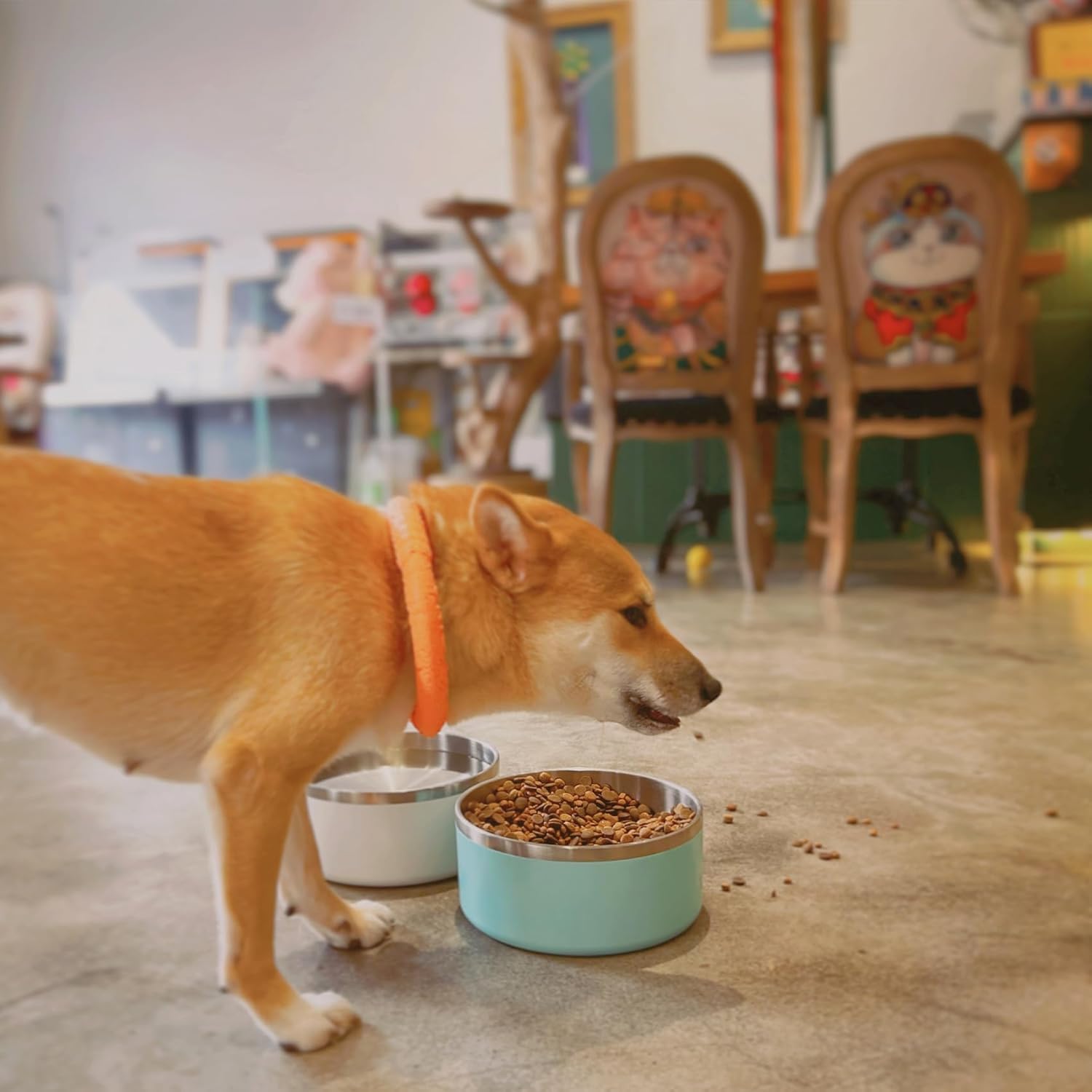 - STAINLESS STEEL DOG BOWLS-Our food and water bowls for dogs are made of double wall insulation and 304 food grade stainless steel, which is super long lasting, rustproof, scratchproof, environmental friendly. The outside of our non-slip dog bowls are made of Acrylonitrile Butadiene Styrene (ABS) for more durability.