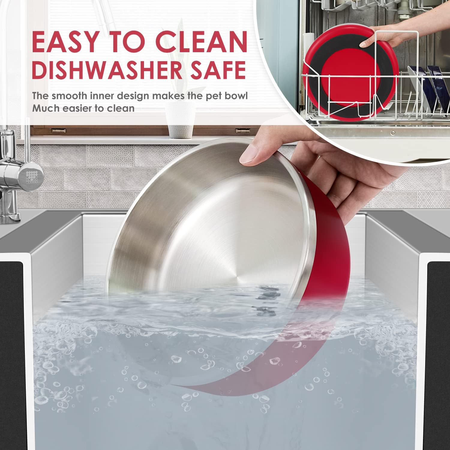 - EASY TO CLEAN-The stainless steel dog water bowl uses polishing technology to create a smooth surface. These crafts can help you easy to clean and wipe. These metal bowls are perfect for dogs, cats, rabbits or other animals.
