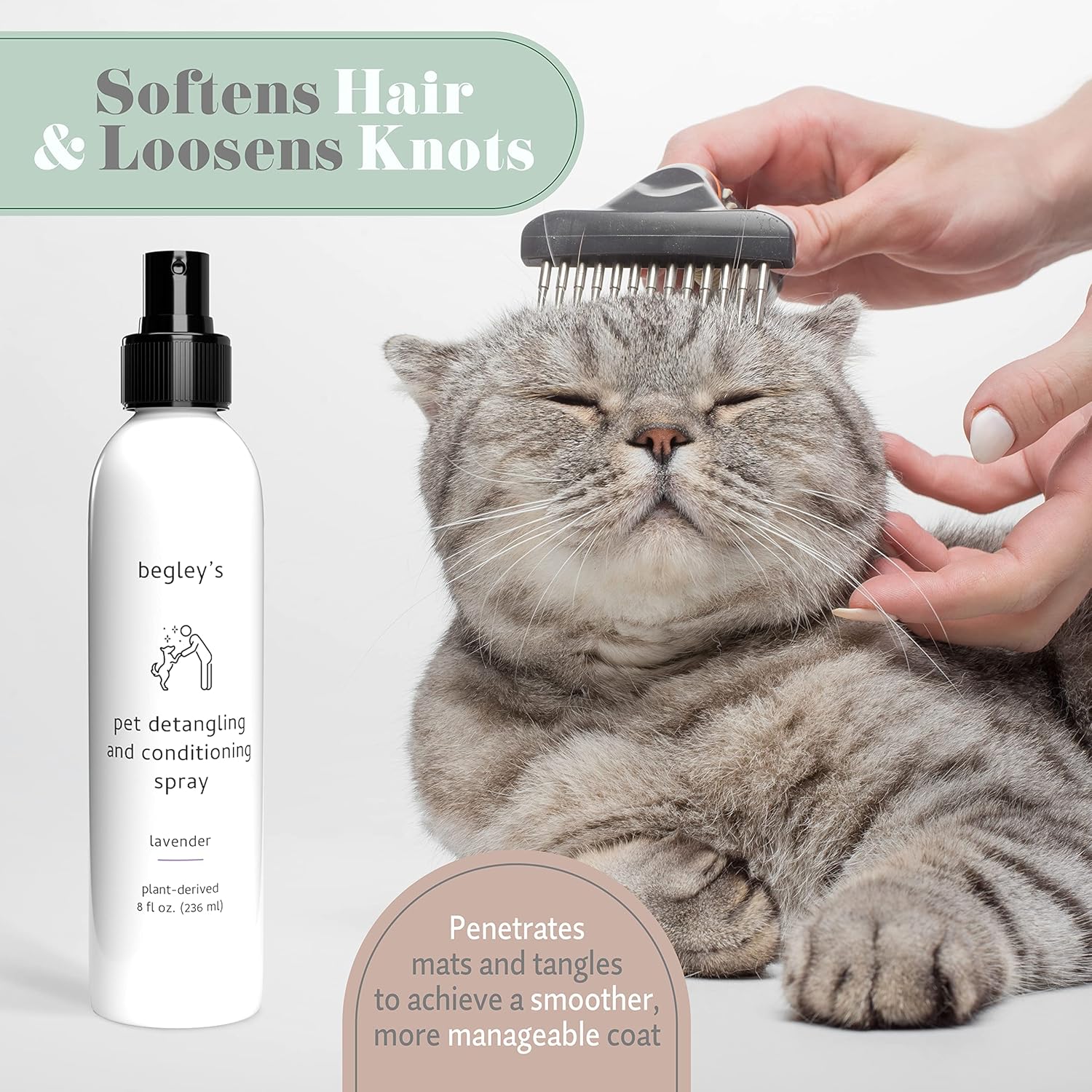 Begley's Pet Detangling Spray - Premium Essential Oil Scented Detangler Spray for Dogs, Puppies & Cats - Dog Leave in Conditioner Spray - Dematting Spray for Dogs & Pets - 8 oz, Lavender