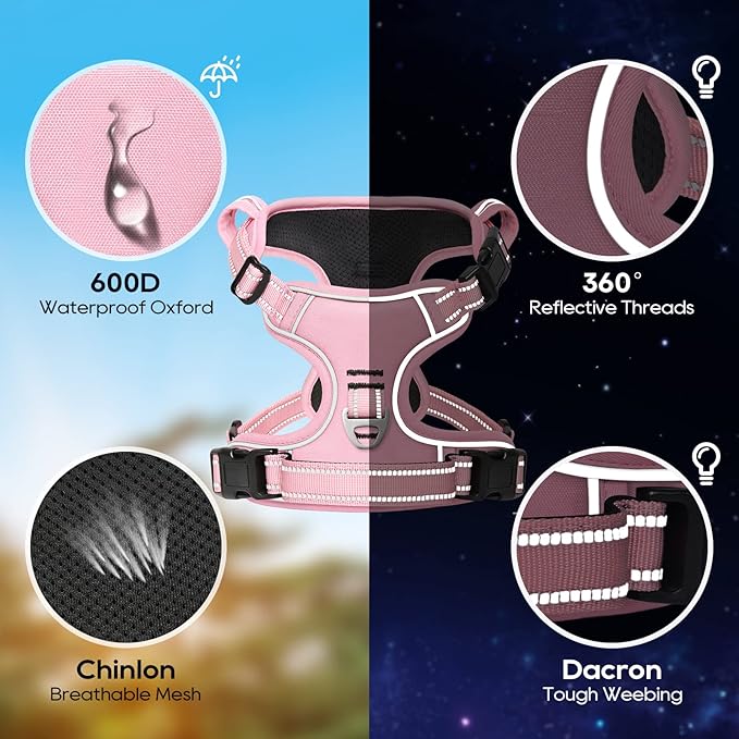 Timos Dog Harness, 3 Snap Buckles No-Pull Soft Padded Dog Vest with 2 Metal Leash Clips, Adjustable Reflective No Choke Pet Harness with Easy Control Handle for Large Dogs,Pale Pink,L