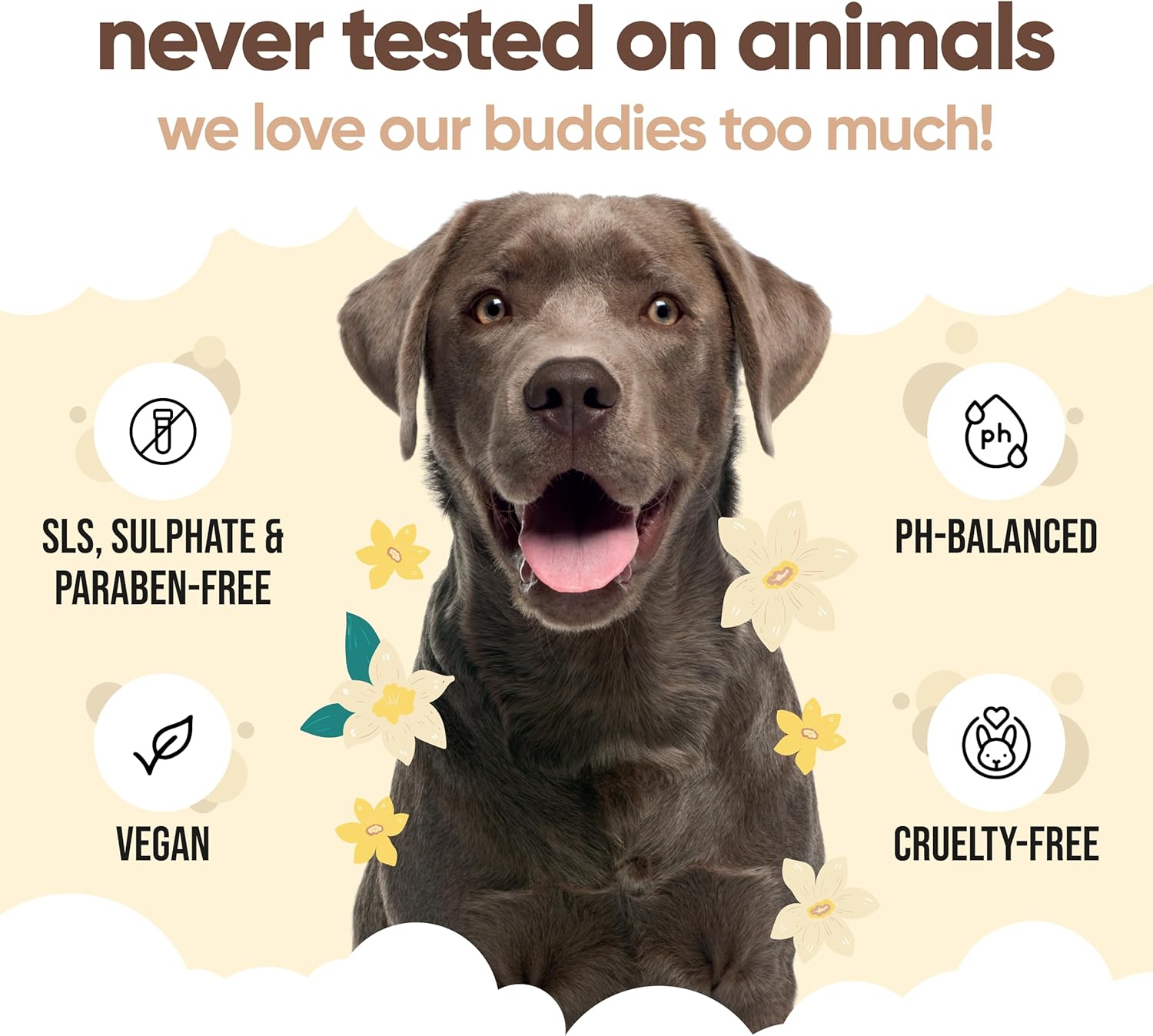 - Odor-Eliminating Formula: This dog shampoo for smelly dogs is expertly crafted with vanilla and Shea butter to eliminate unpleasant odors, leaving your pet smelling fresh and clean.