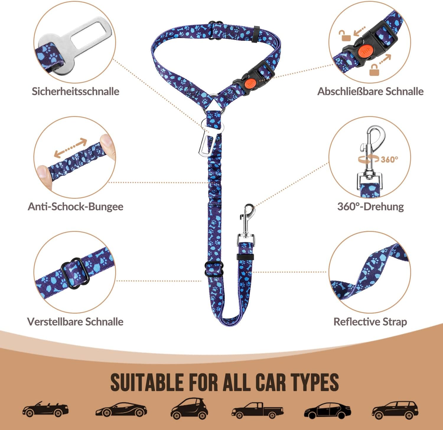 - Headrest Restraint Design --- The dog seatbelt (2pcs included) is designed with headrest restraint, which is suitable for various headrest models. The straps that hang on the headrest are connected by lockable quick shackles that are tight and not easy to open, ensuring the safety of your pet. If you leash it to the maximum length, you will have a normal leash. Ideal Thanksgiving and Christmas Gift for Pets.
