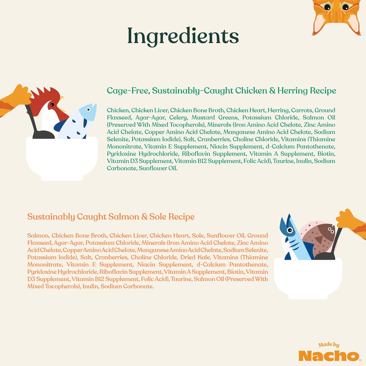Made by Nacho Pate Wet Cat Food Variety Pack, Chicken & Herring and Salmon & Sole, 3 Ounce Cans, Grain-Free Canned Pet Food, Bone Broth Infused for Hydration, 12 Pack