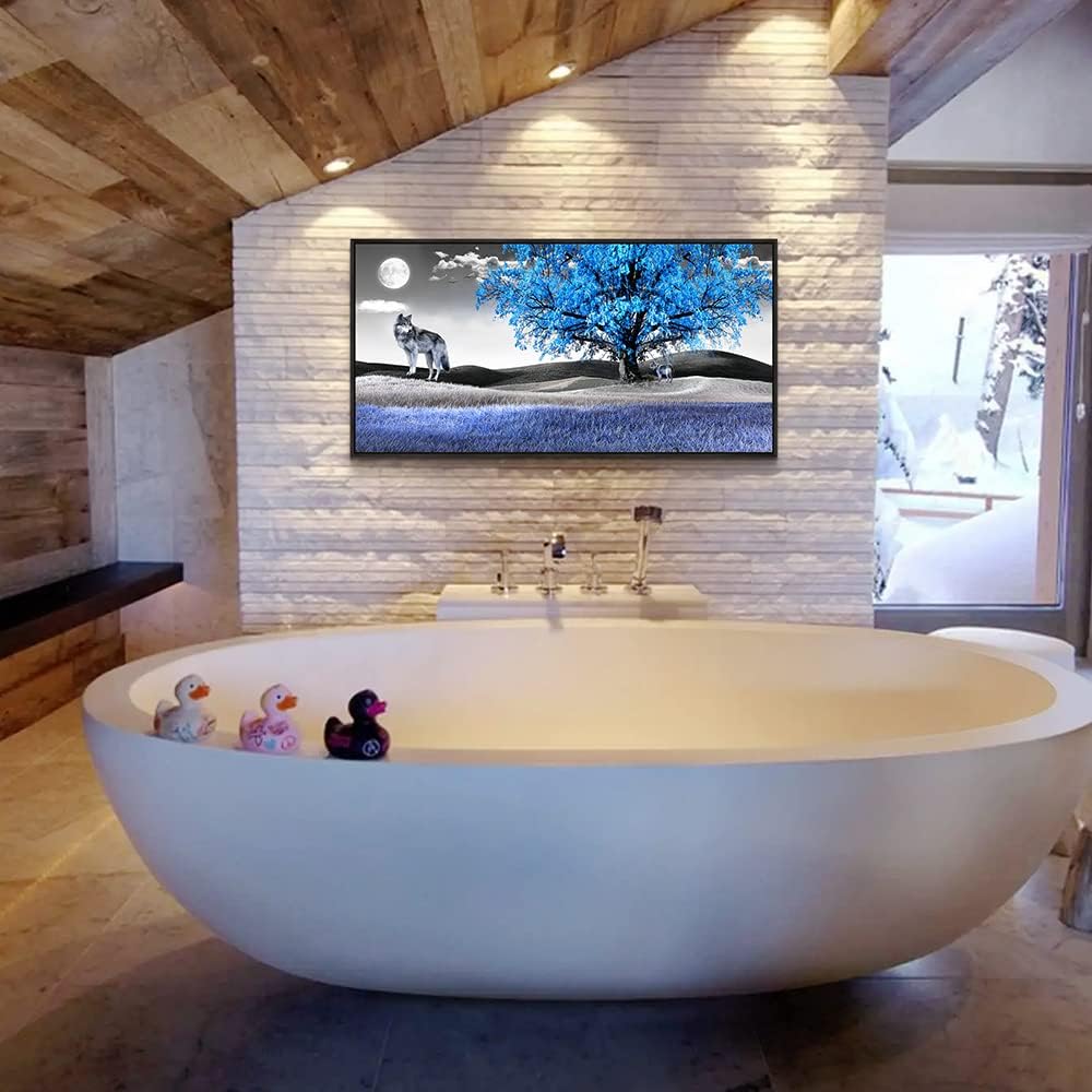 Framed Canvas Wall Art For Living Room Family Wall Decorations For Bedroom Modern Office Wall Decor Paintings Blue Tree Landscape Pictures Artwork Canvas Art Prints Home Decor Black Frame 20" X 40"
